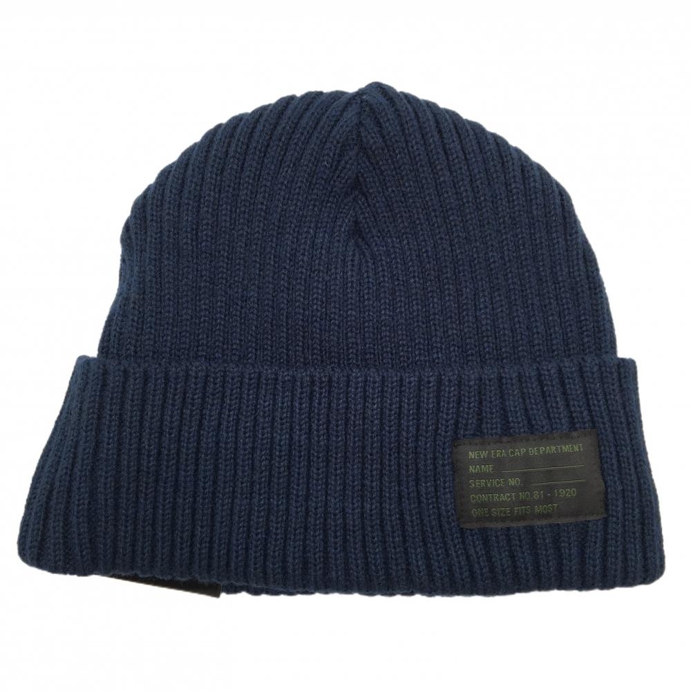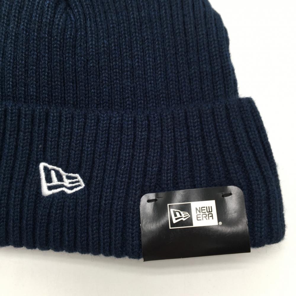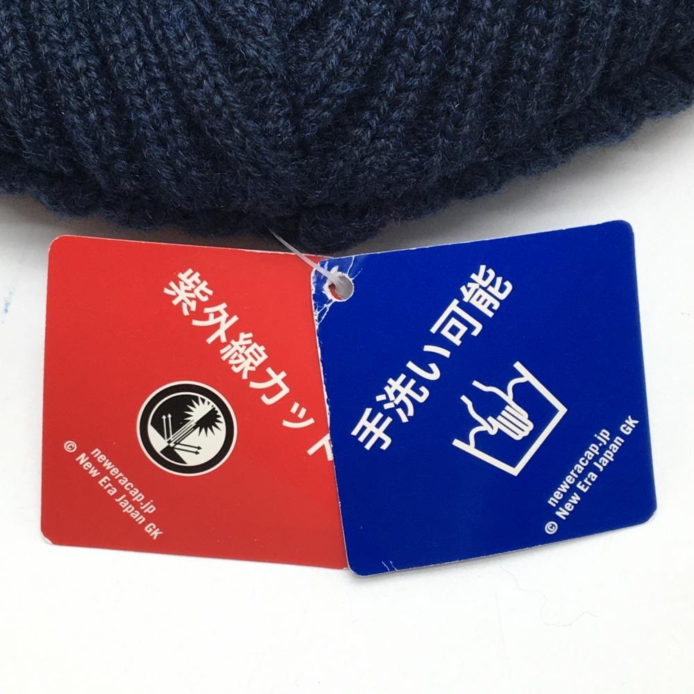 【新品】ニューエラ ニット帽 ネイビー×白 フロントロゴ 裏地フリース ウール混 ゴルフウェア New Era