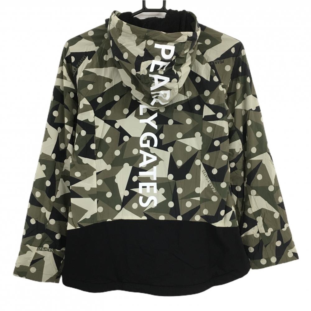 【美品】パーリーゲイツ ジップパーカー グリーン系×ベージュ カモフラ調 迷彩 裏起毛 ドット レディース 0(S) ゴルフウェア PEARLY GATES