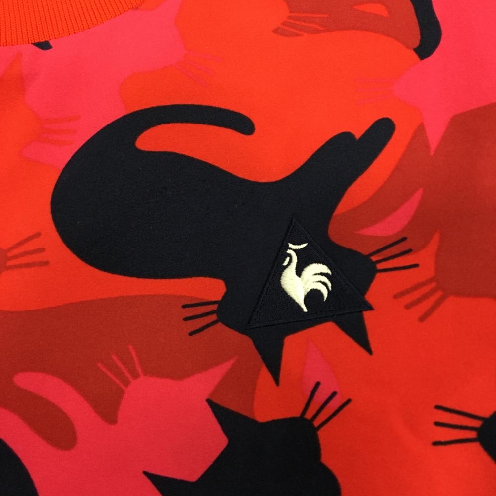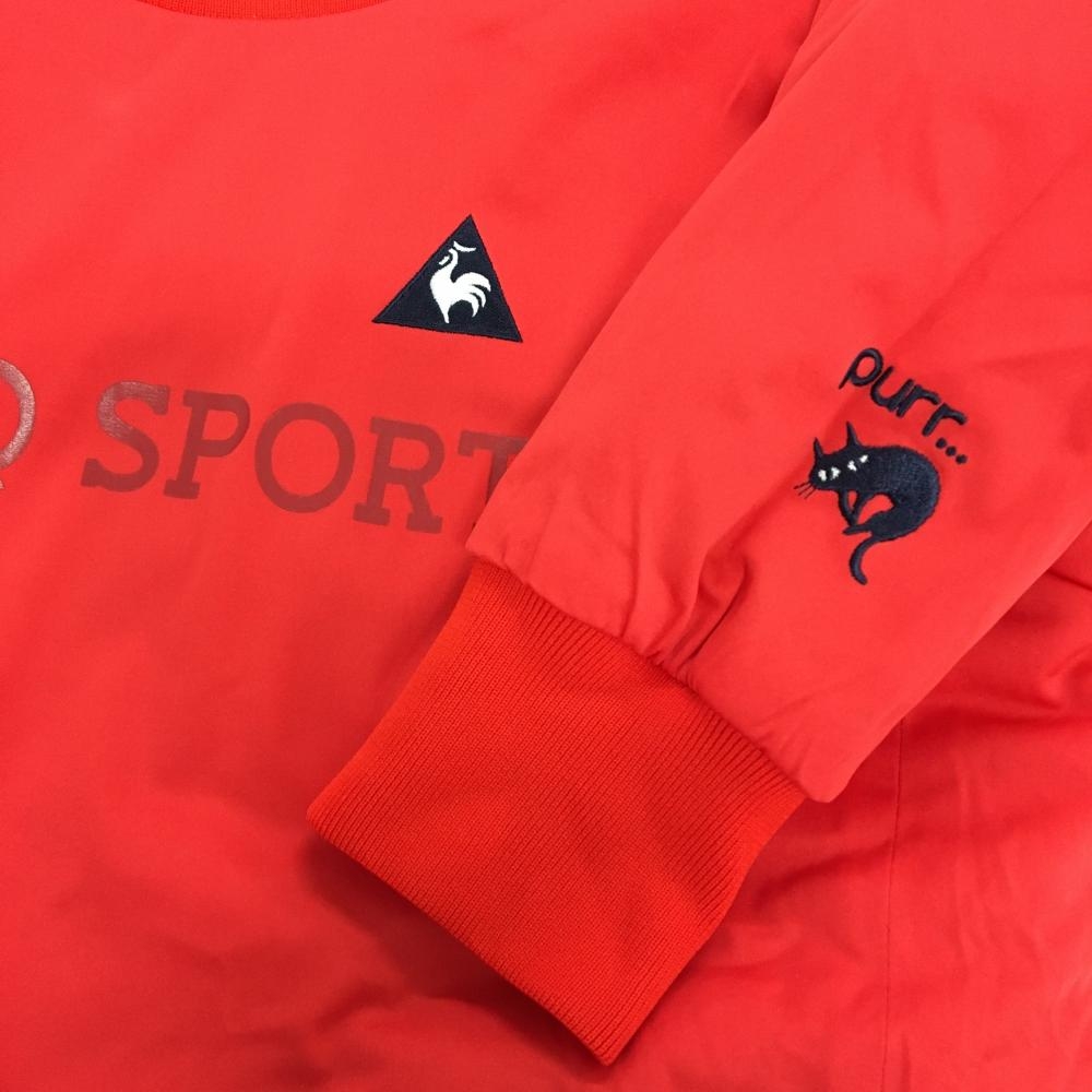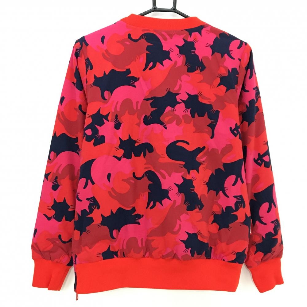 【超美品】ルコックゴルフ 中綿リバーシブルスニード ピンク×レッド 猫柄 サイドジップ レディース M ゴルフウェア le coq sportif