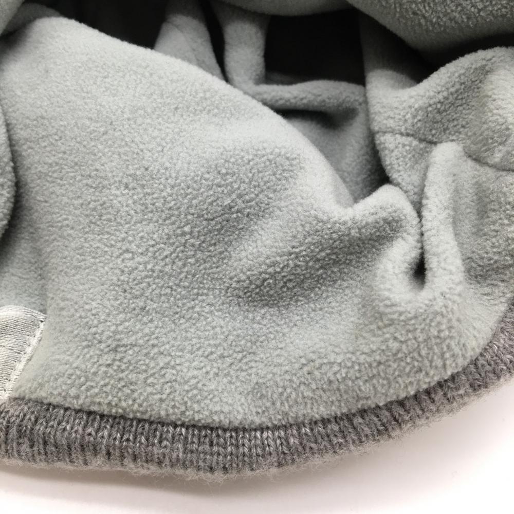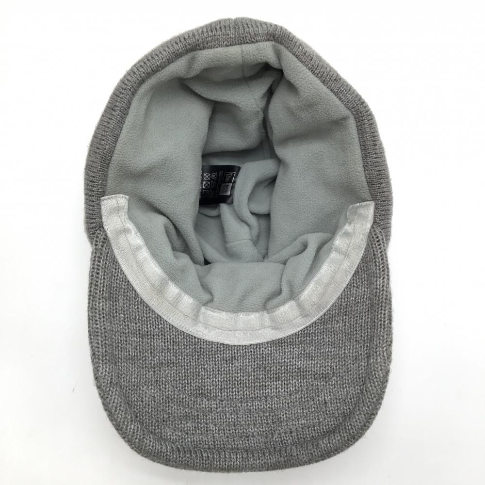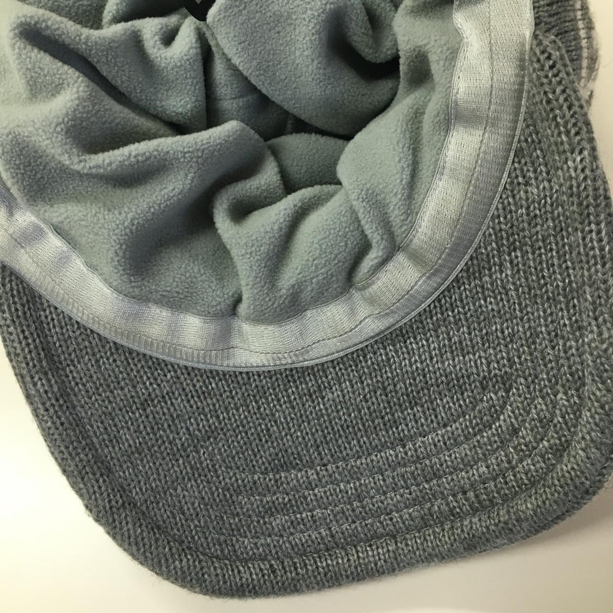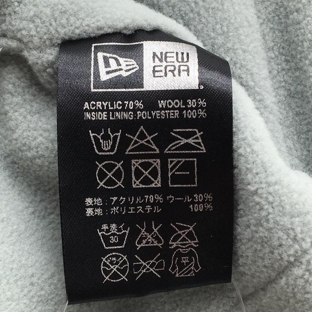 【美品】ニューエラ つば付ニット帽 グレー×白 一部星柄 裏フリース ウール混 ゴルフウェア New Era