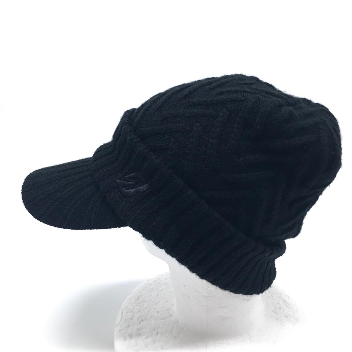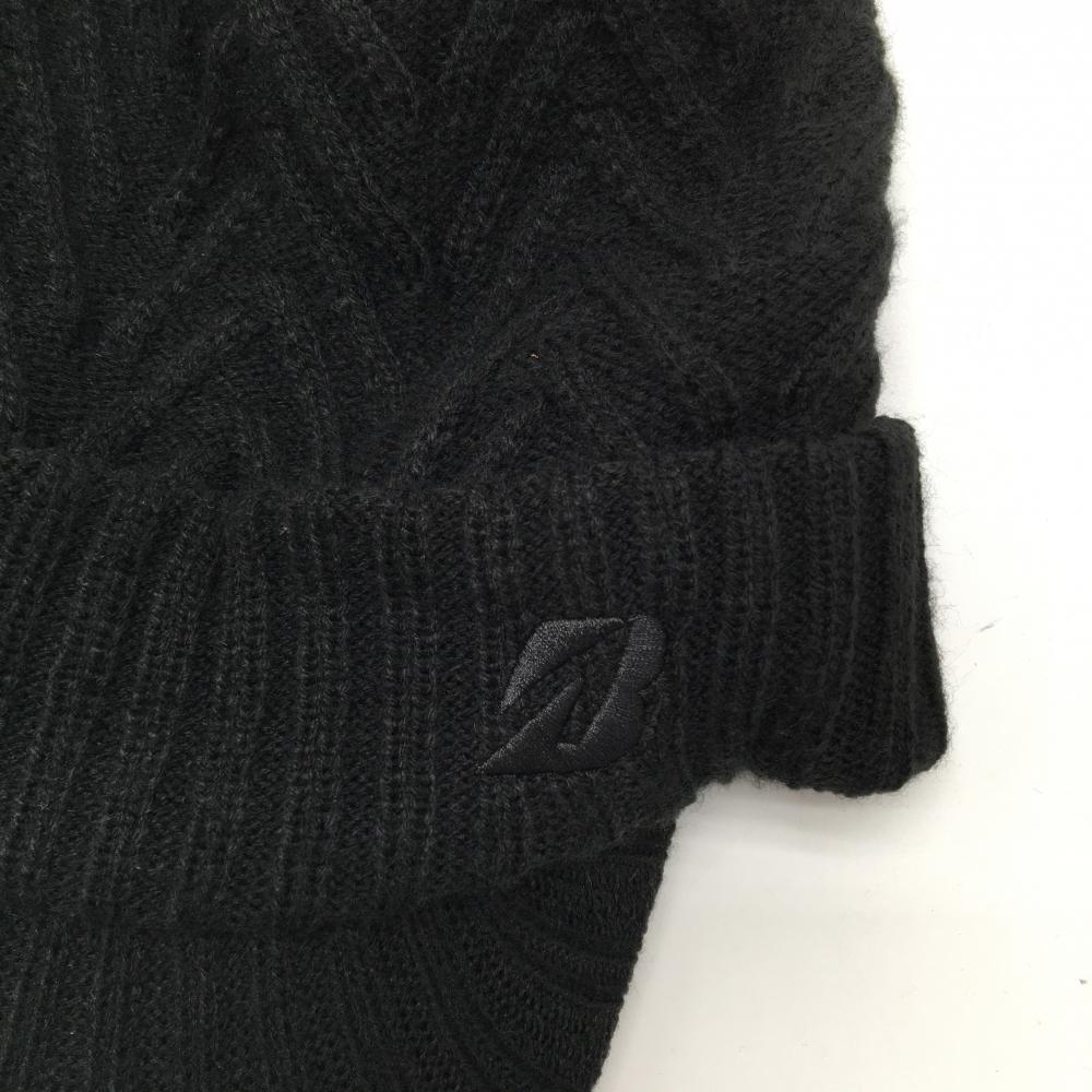 【美品】ブリヂストン つば付きニット帽 黒 ロゴ刺しゅう アクリル100% フリーサイズ(約56~59cm) ゴルフウェア Bridgestone