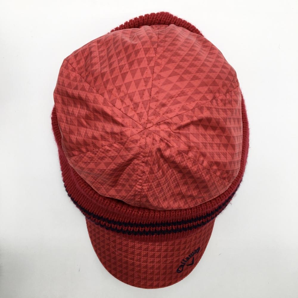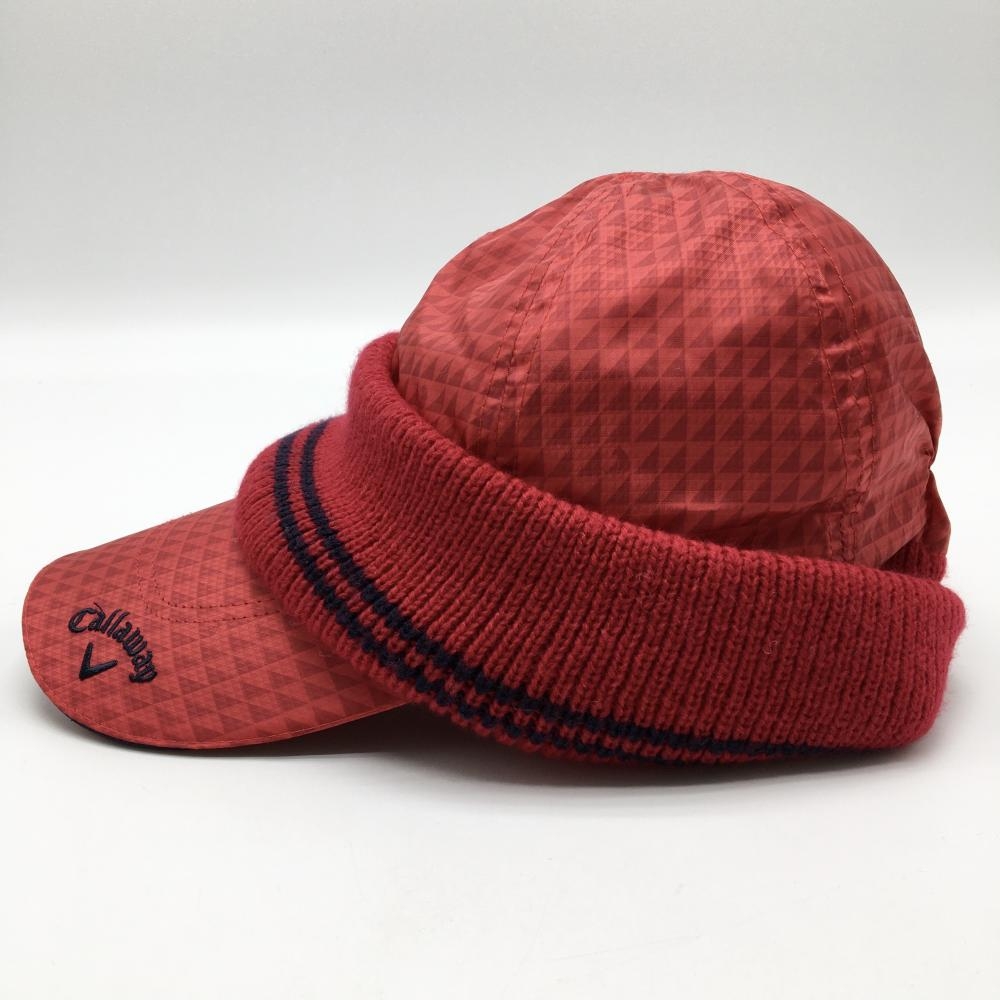 【超美品】キャロウェイ キャップ レッド 総柄 一部ニット 裏起毛 FR ゴルフウェア Callaway