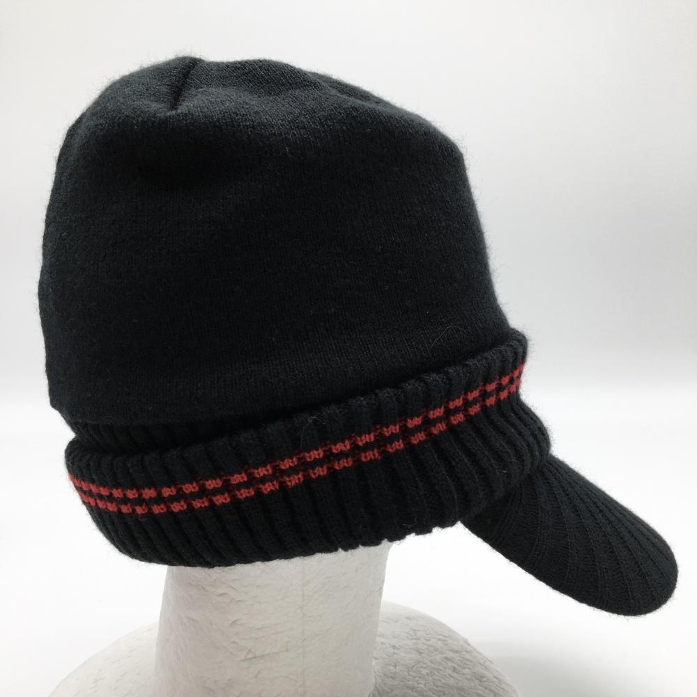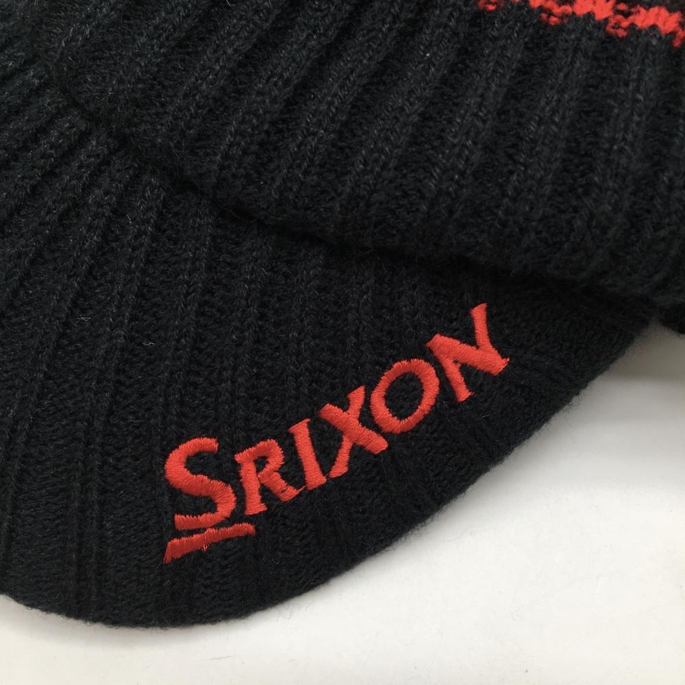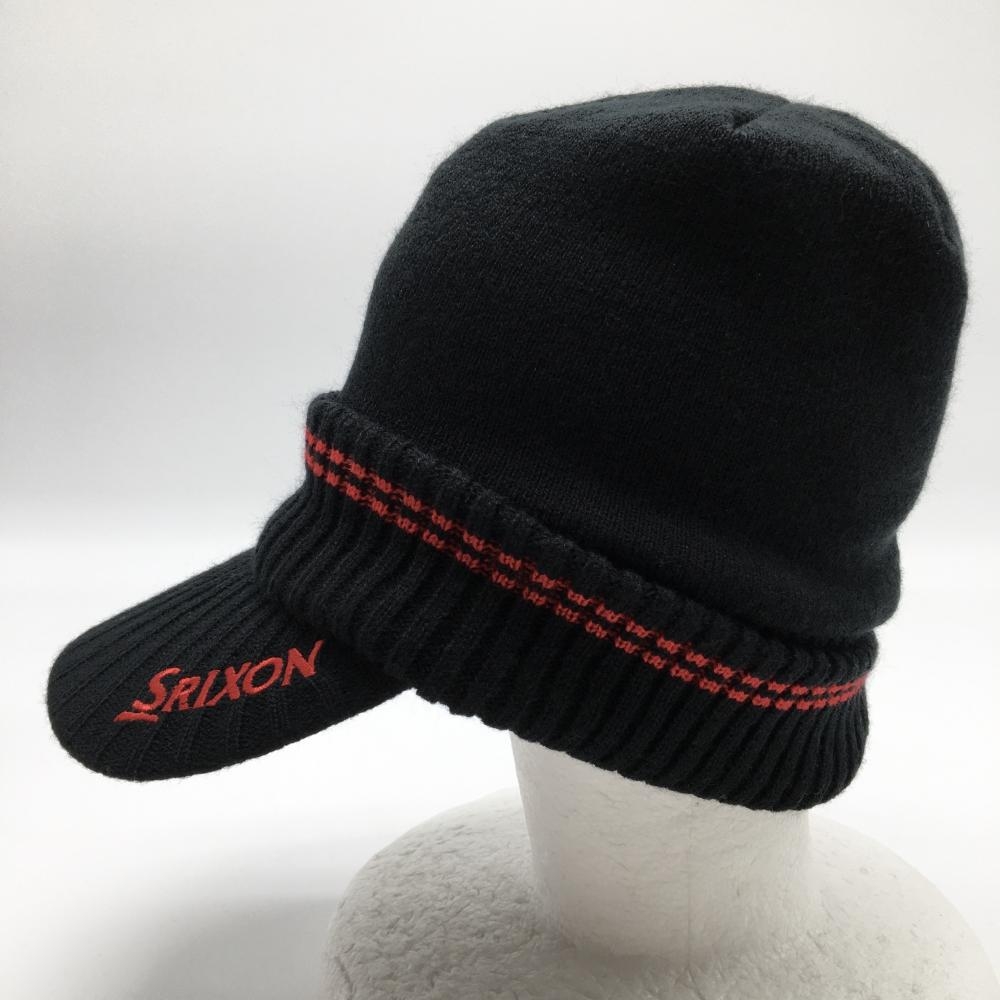 【超美品】スリクソンバイデサント つば付ニット帽 黒×レッド ロゴ刺しゅう F ゴルフウェア SRIXON