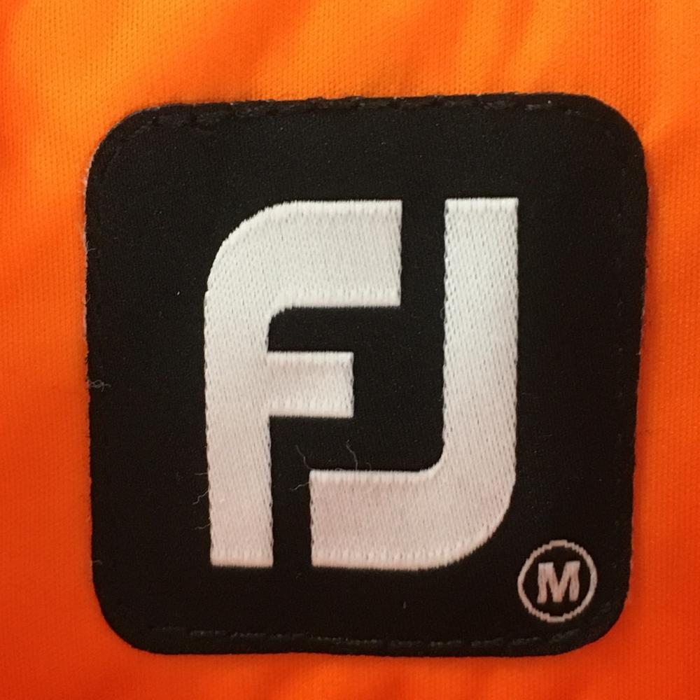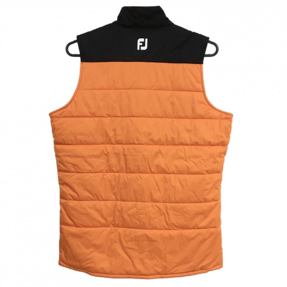 【美品】フットジョイ 中綿ベスト オレンジ×黒 ネックロゴ ダブルジップ メンズ M ゴルフウェア FootJoy