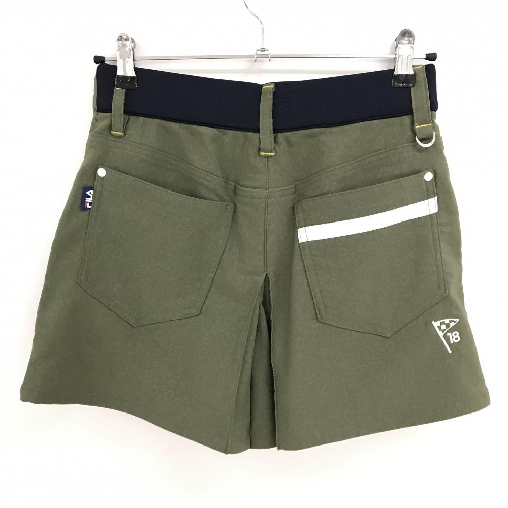 【超美品】フィラゴルフ キュロットスカート カーキ×白 レオパード柄地模様 裏起毛 ストレッチ レディース S ゴルフウェア FILA GOLF