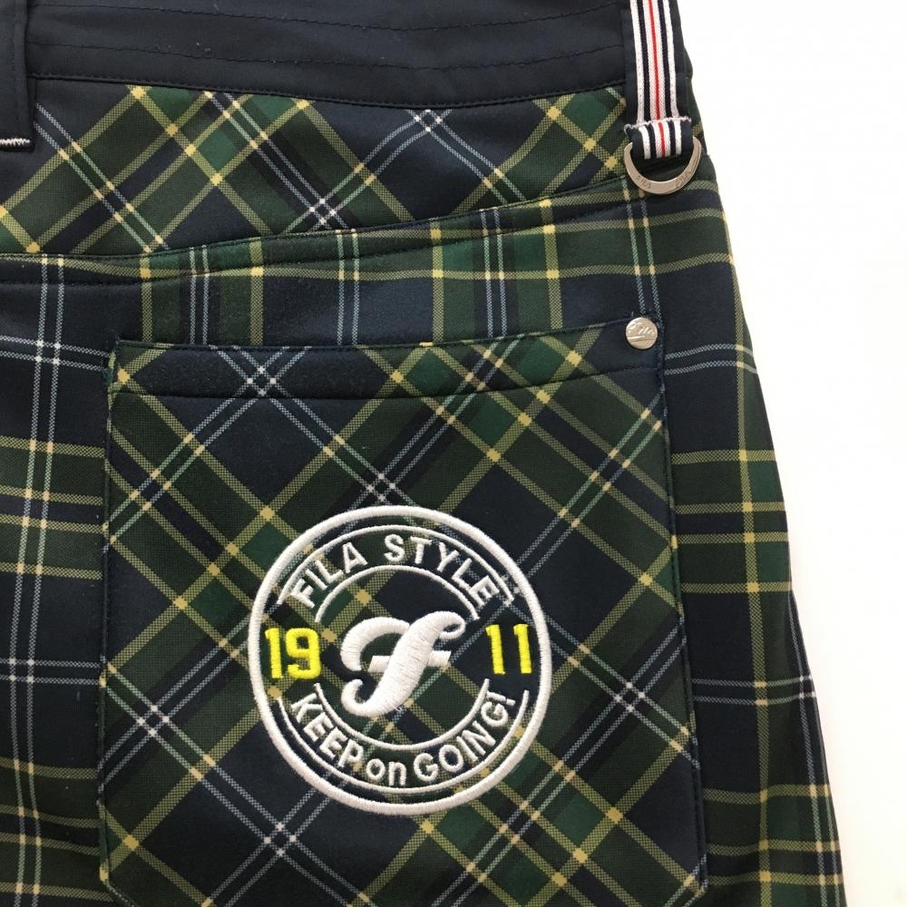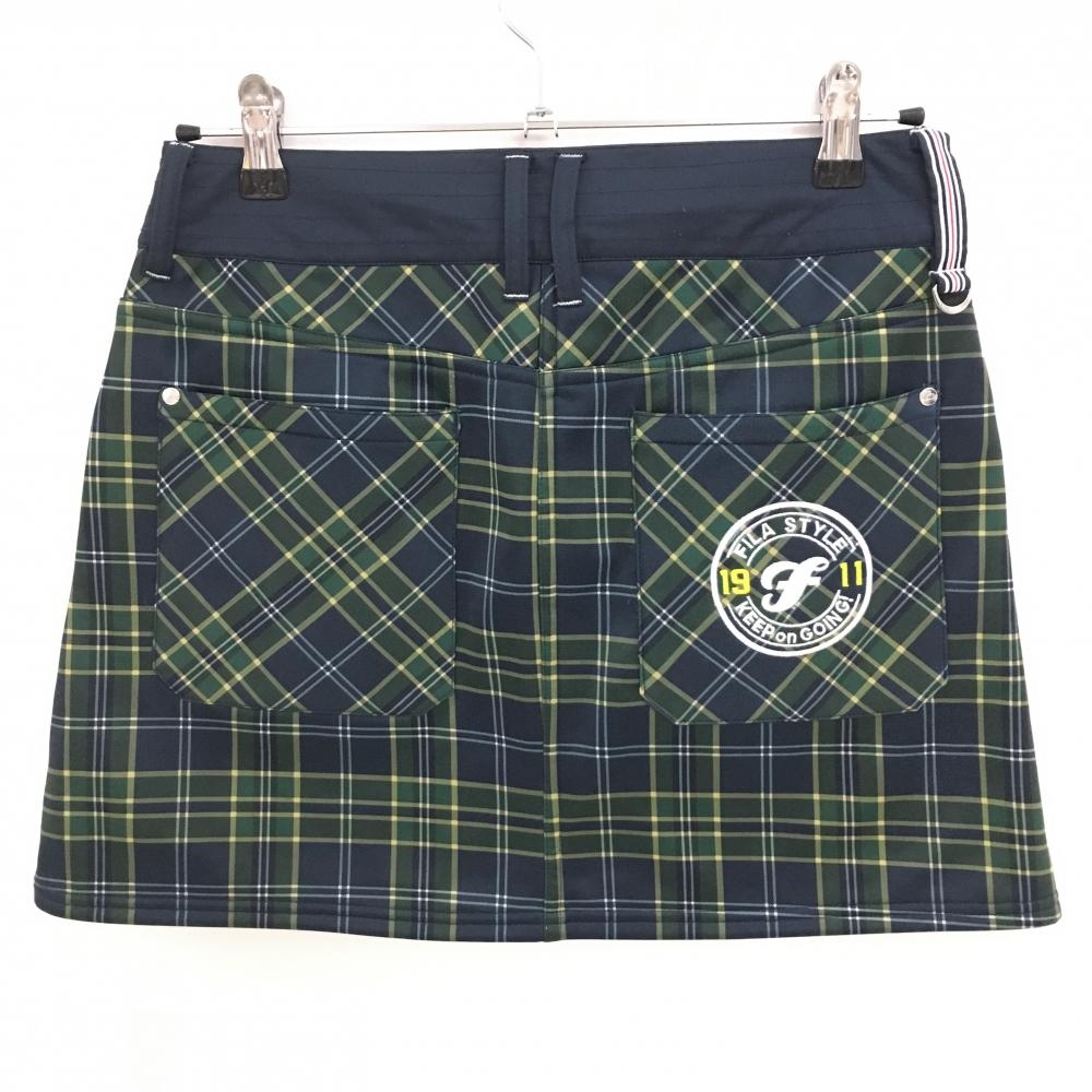 【美品】フィラゴルフ スカート ダークネイビー×グリーン チェック 裏起毛 ストレッチ レディース M ゴルフウェア FILA GOLF