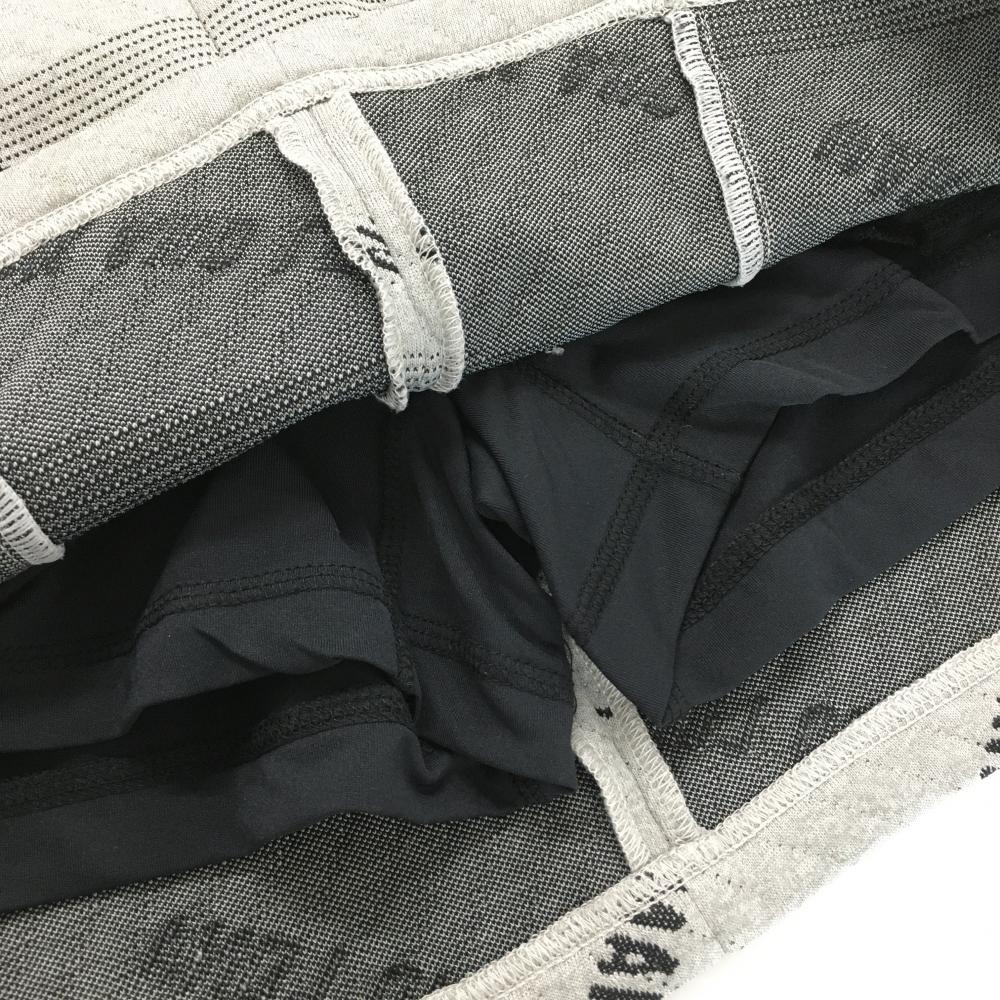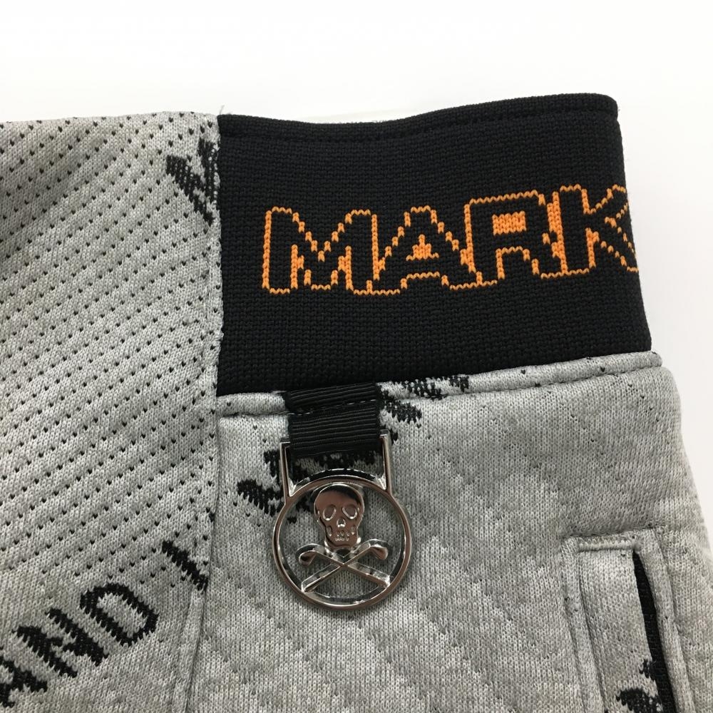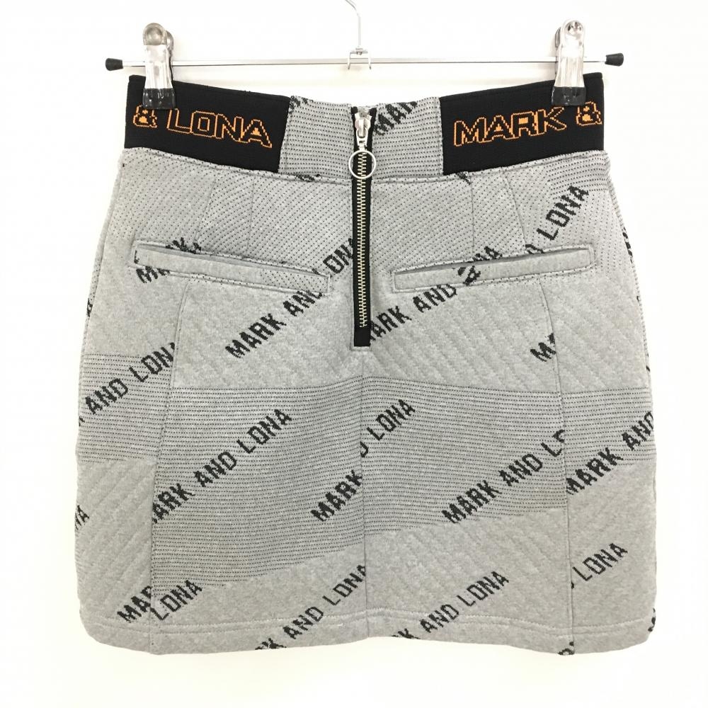 【美品】マークアンドロナ スカート グレー×黒 ロゴ総柄 サイドウエストゴム 後ろハーフジップ レディース 36(S) ゴルフウェア MARK&LONA