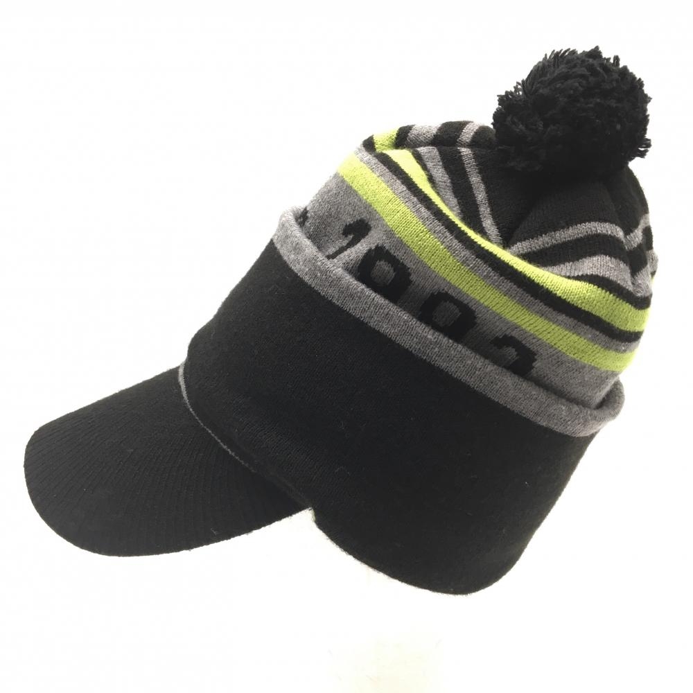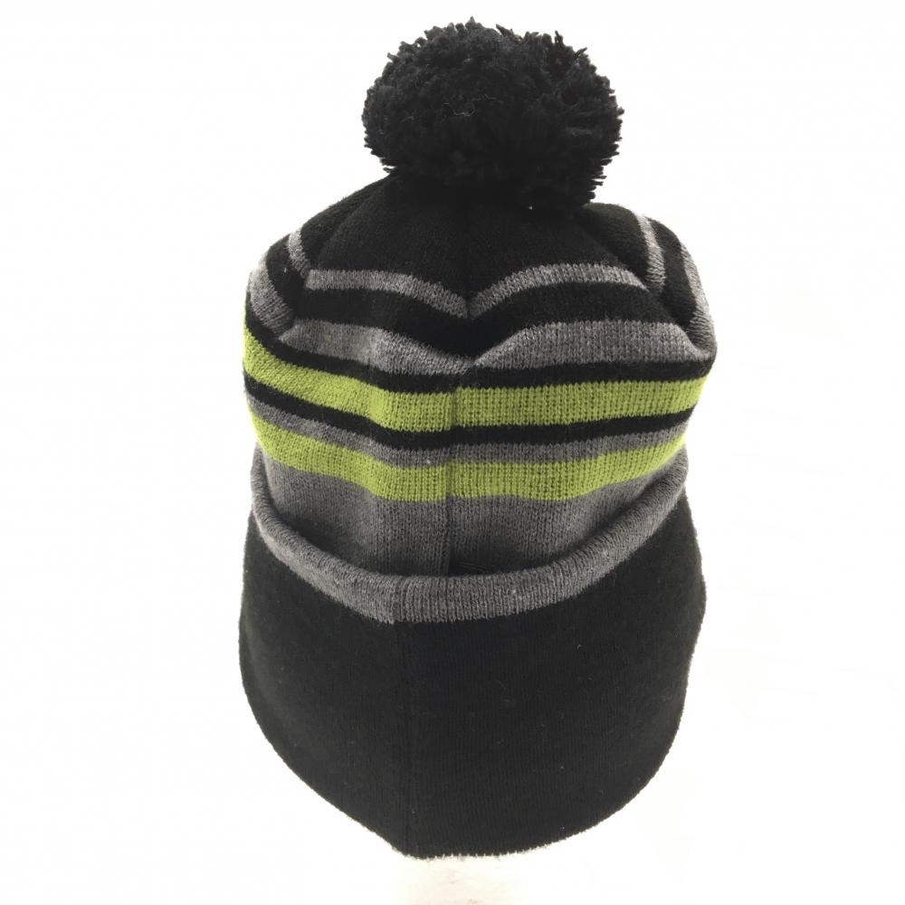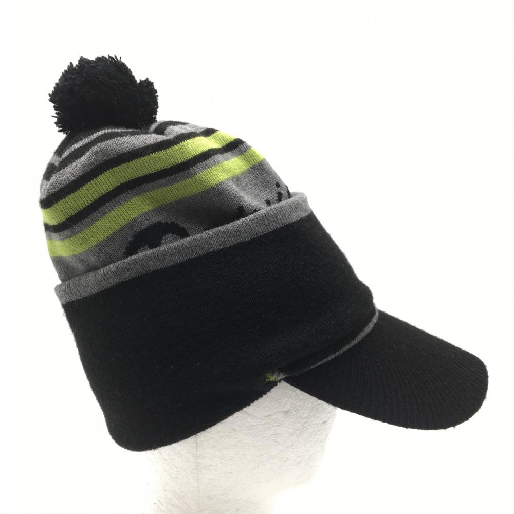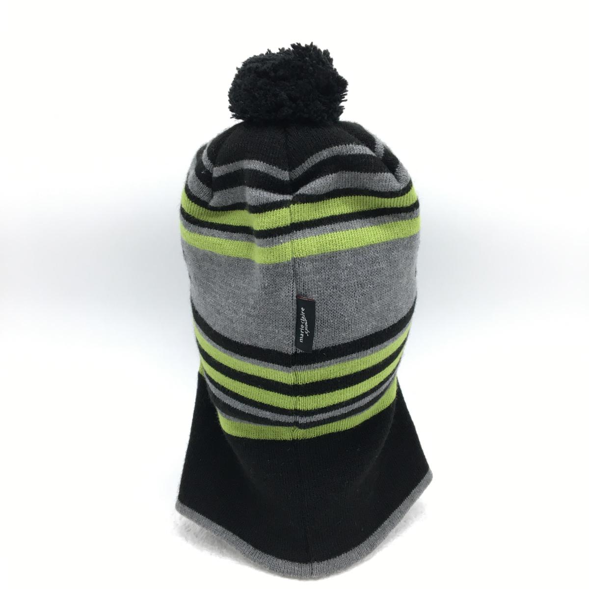 マリクレール 2WAYつば付きニット帽 黒×グレー×ライトグリーン ボーダー ボンボン付き 表記なし ゴルフウェア marie claire
