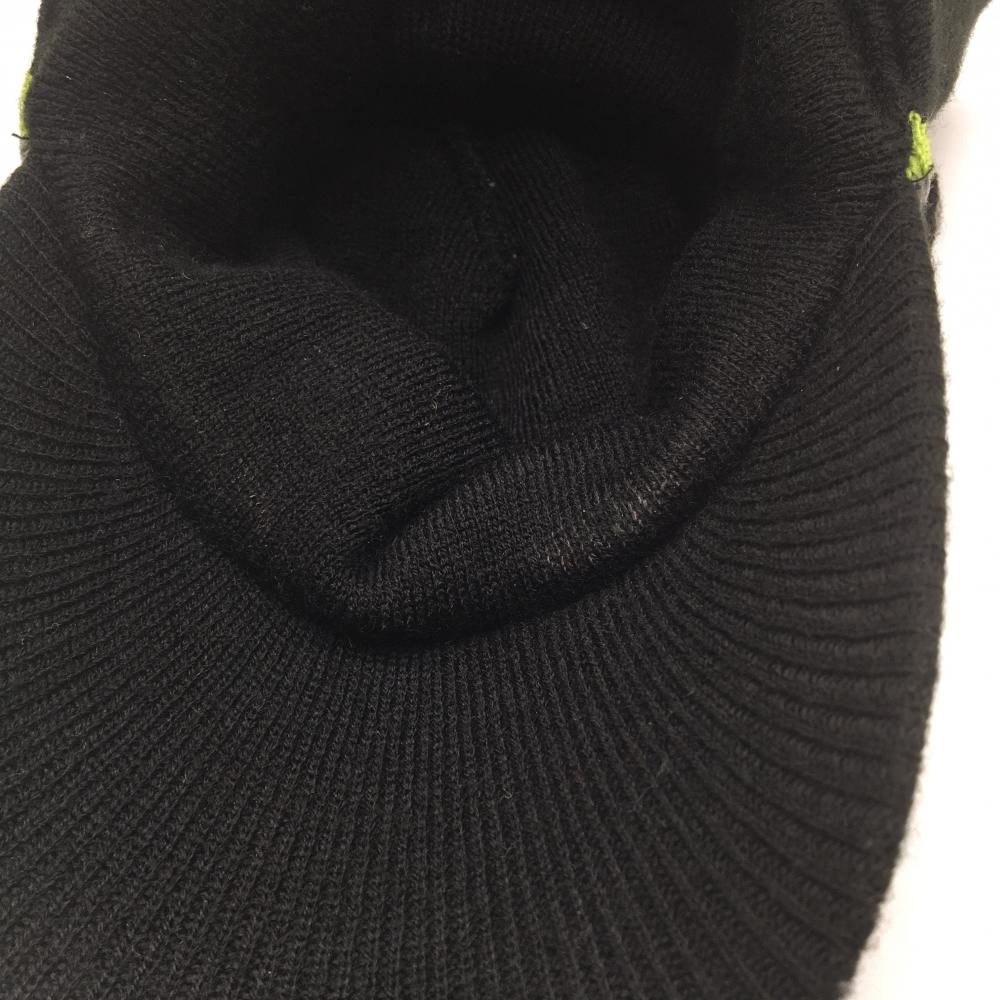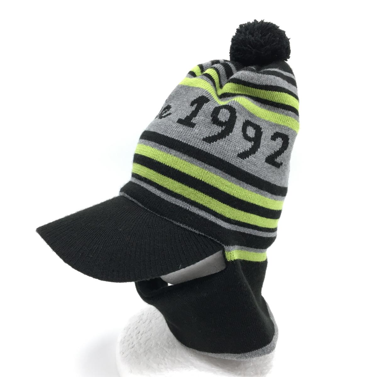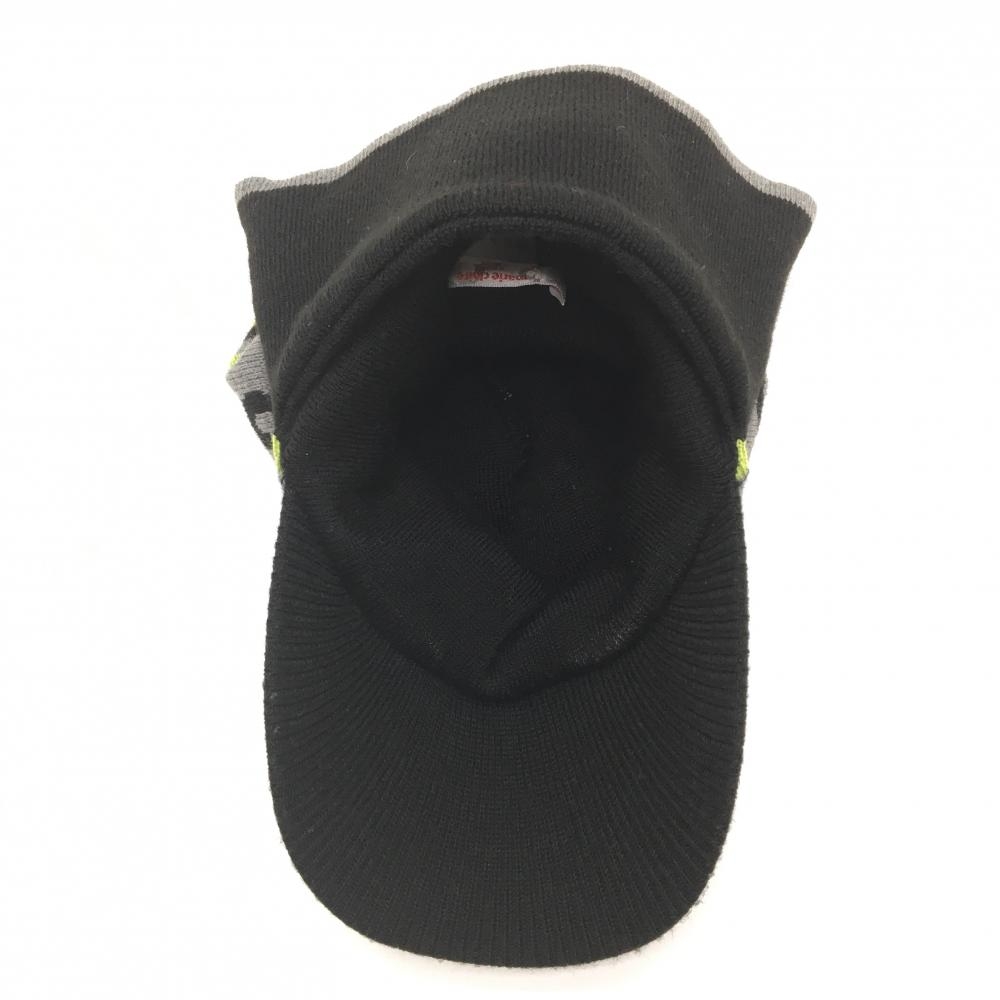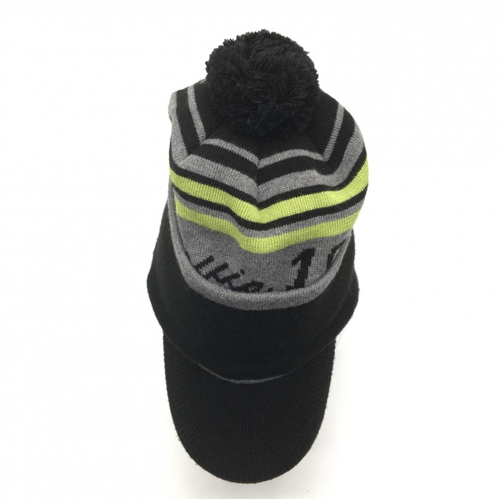 マリクレール 2WAYつば付きニット帽 黒×グレー×ライトグリーン ボーダー ボンボン付き 表記なし ゴルフウェア marie claire
