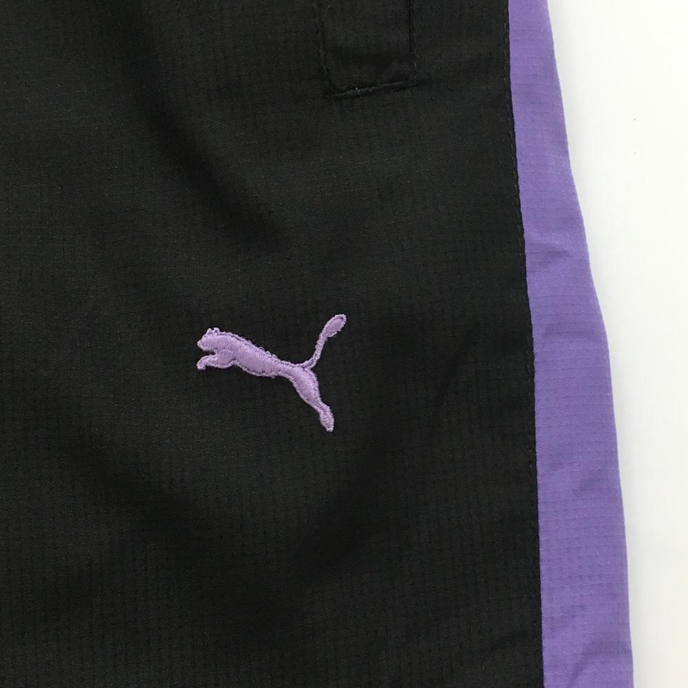 【超美品】プーマ ナイロンパンツ 黒×パープル サイドライン 裏微起毛 ウエストゴム レディース M ゴルフウェア PUMA