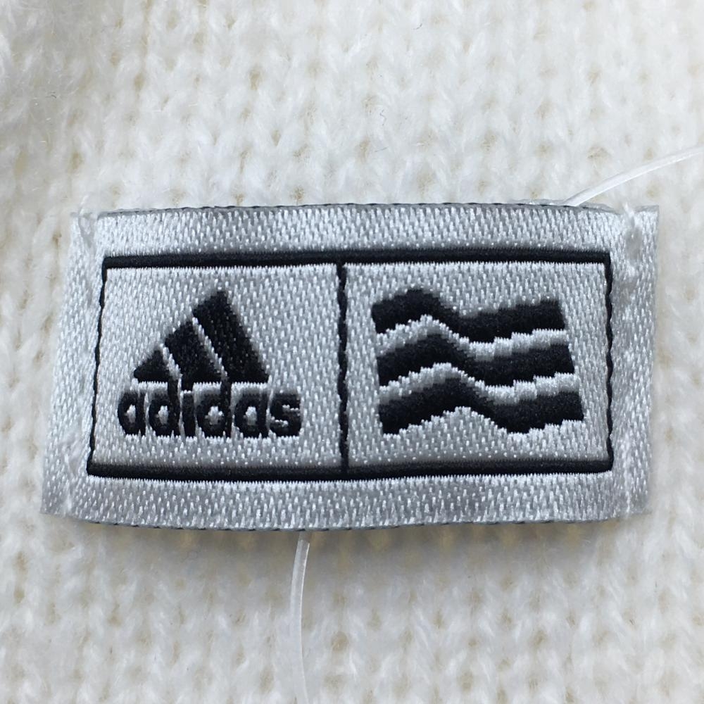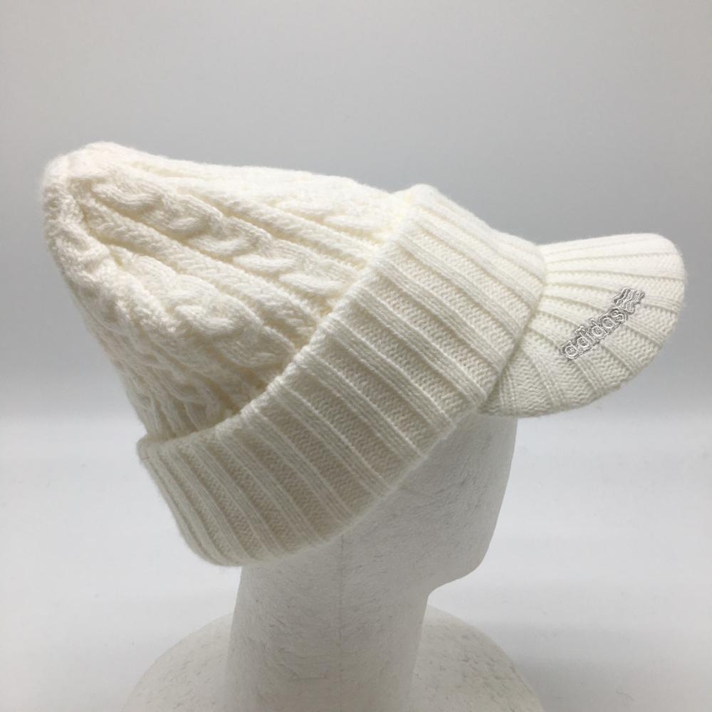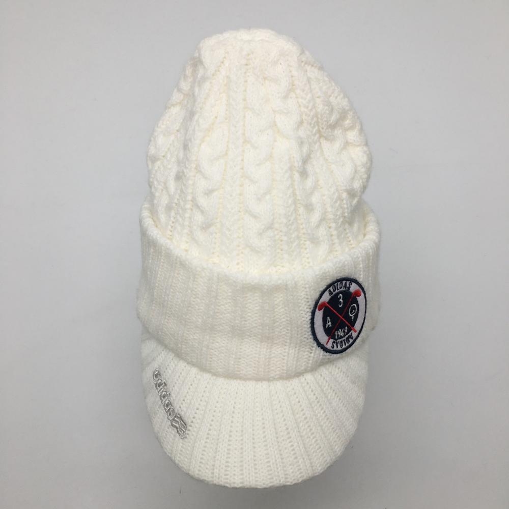 【美品】アディダス つば付ニット帽 白 ケーブル編み フリー(56-58cm) ゴルフウェア adidas