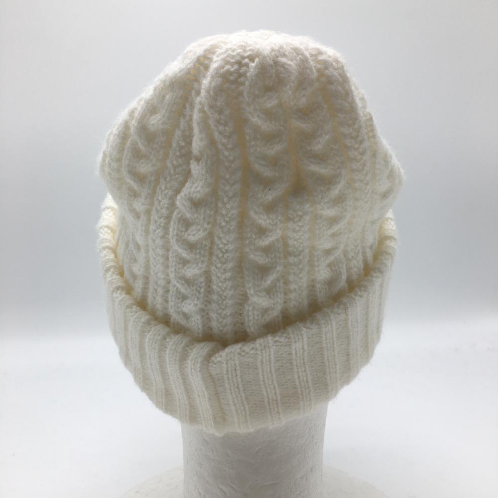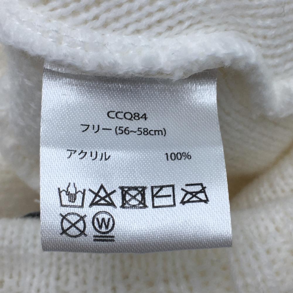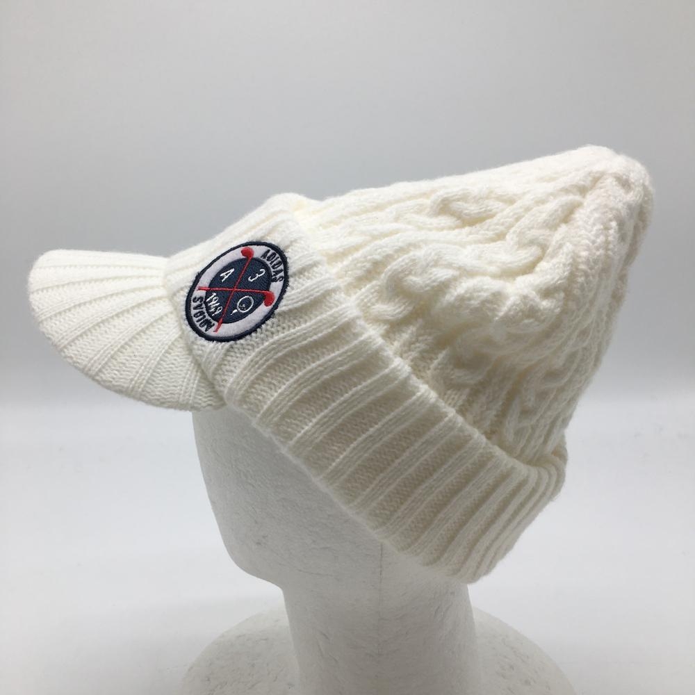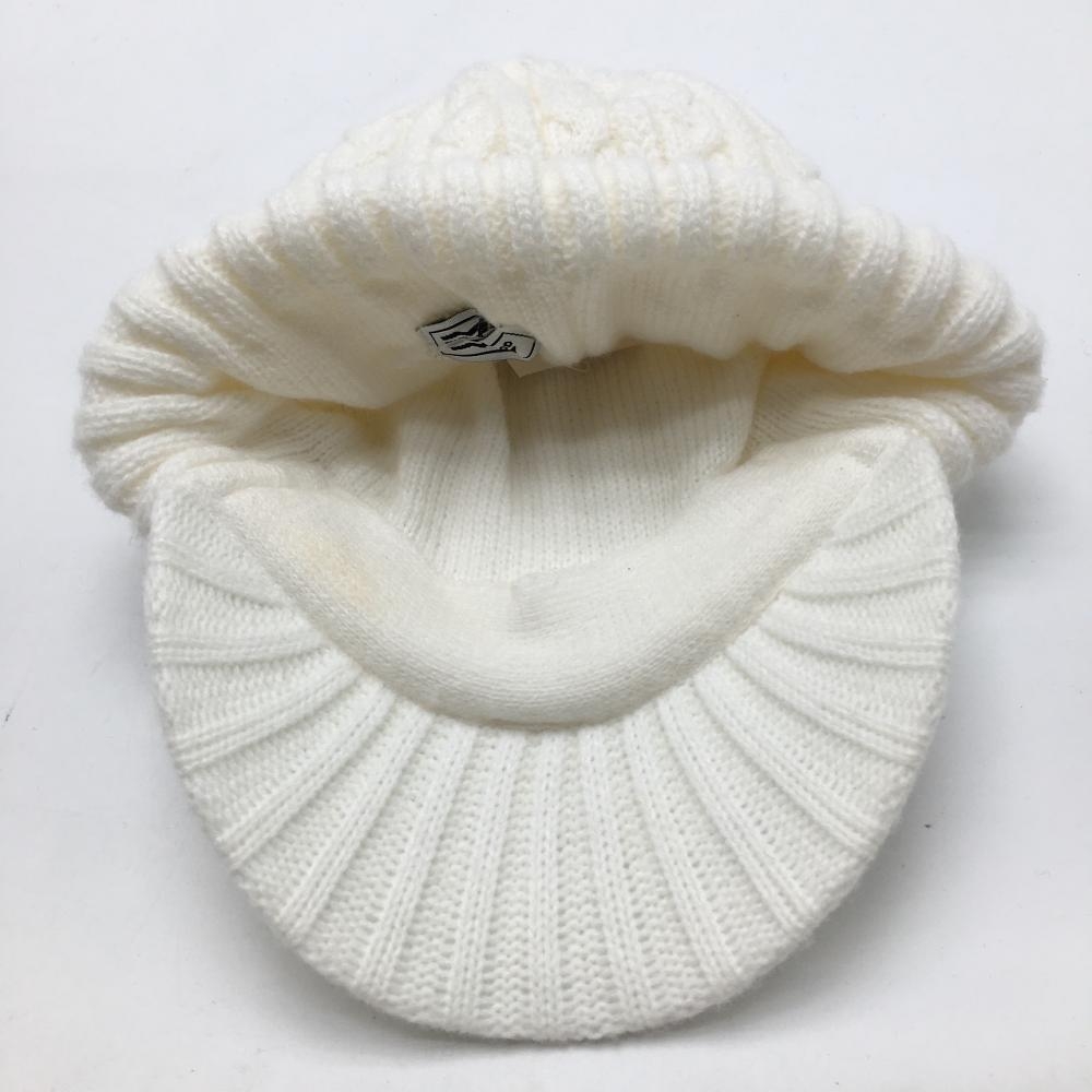 【美品】アディダス つば付ニット帽 白 ケーブル編み フリー(56-58cm) ゴルフウェア adidas