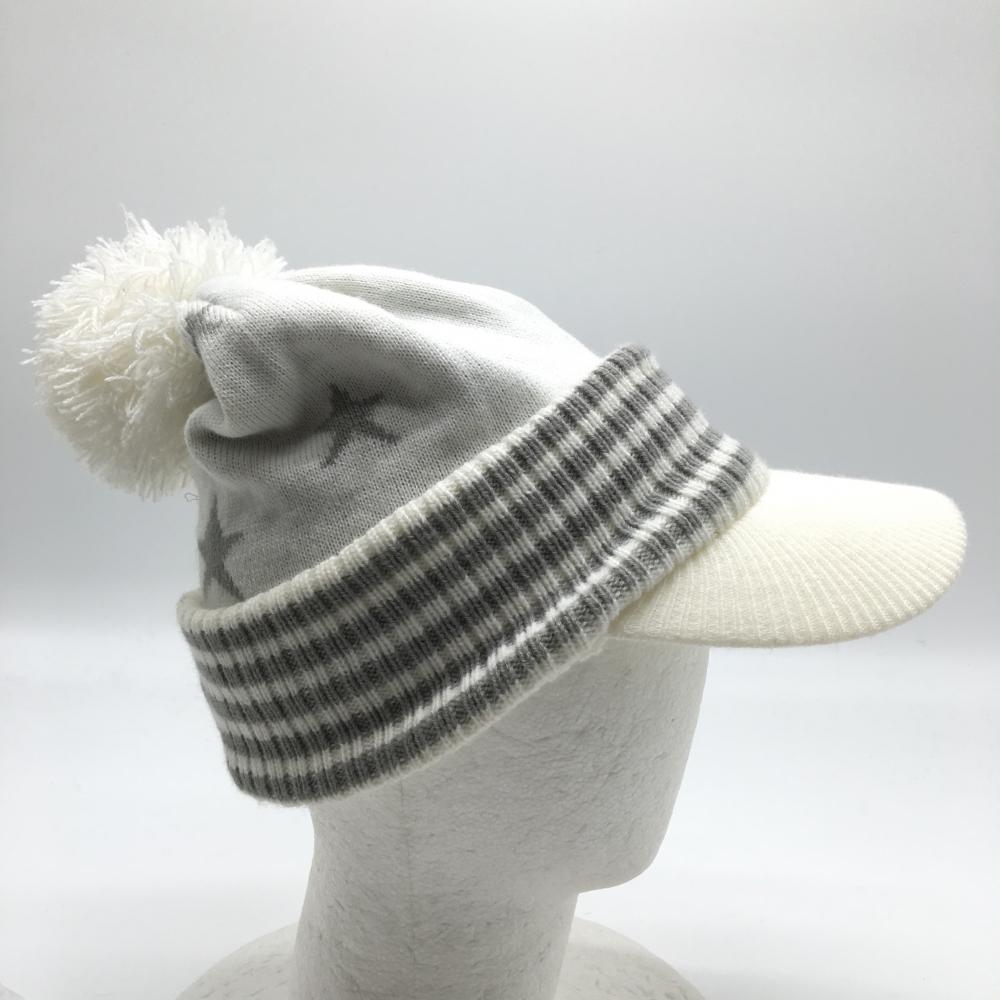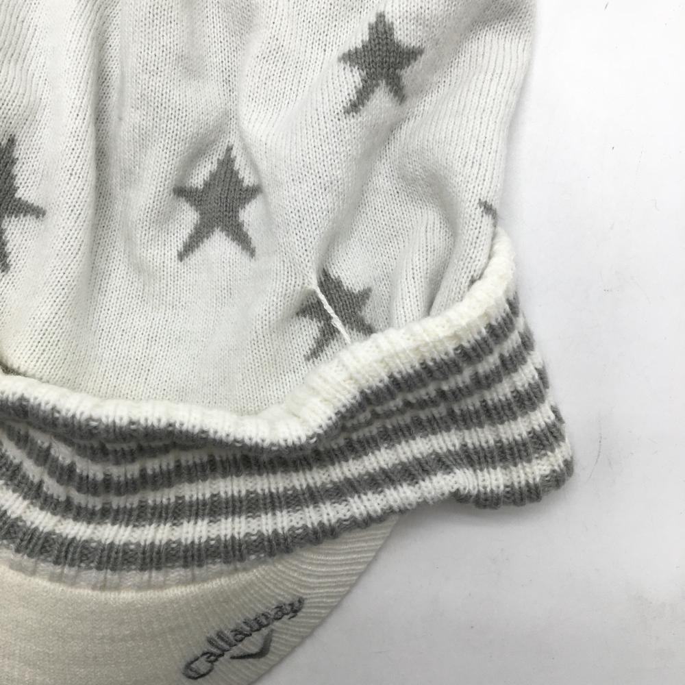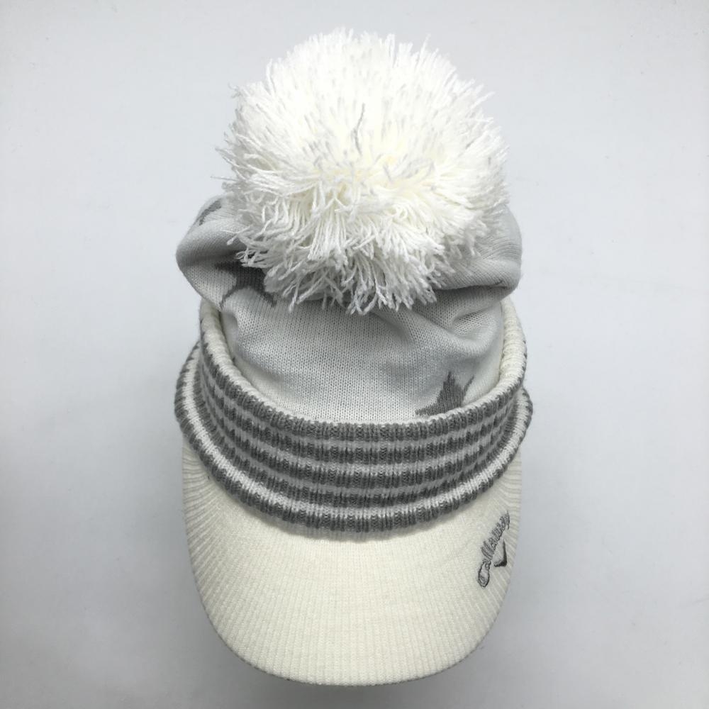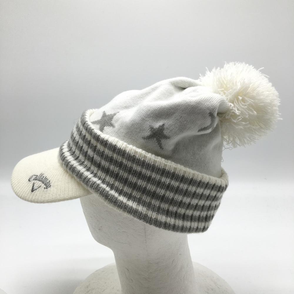 【美品】キャロウェイ サンバイザー付ニット帽 白×グレー 星柄 ボンボン FR ゴルフウェア Callaway