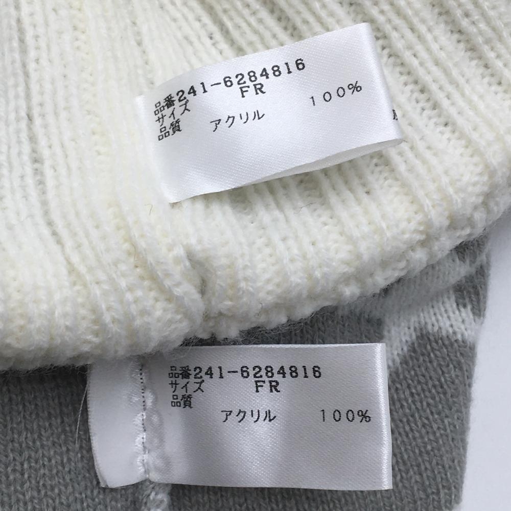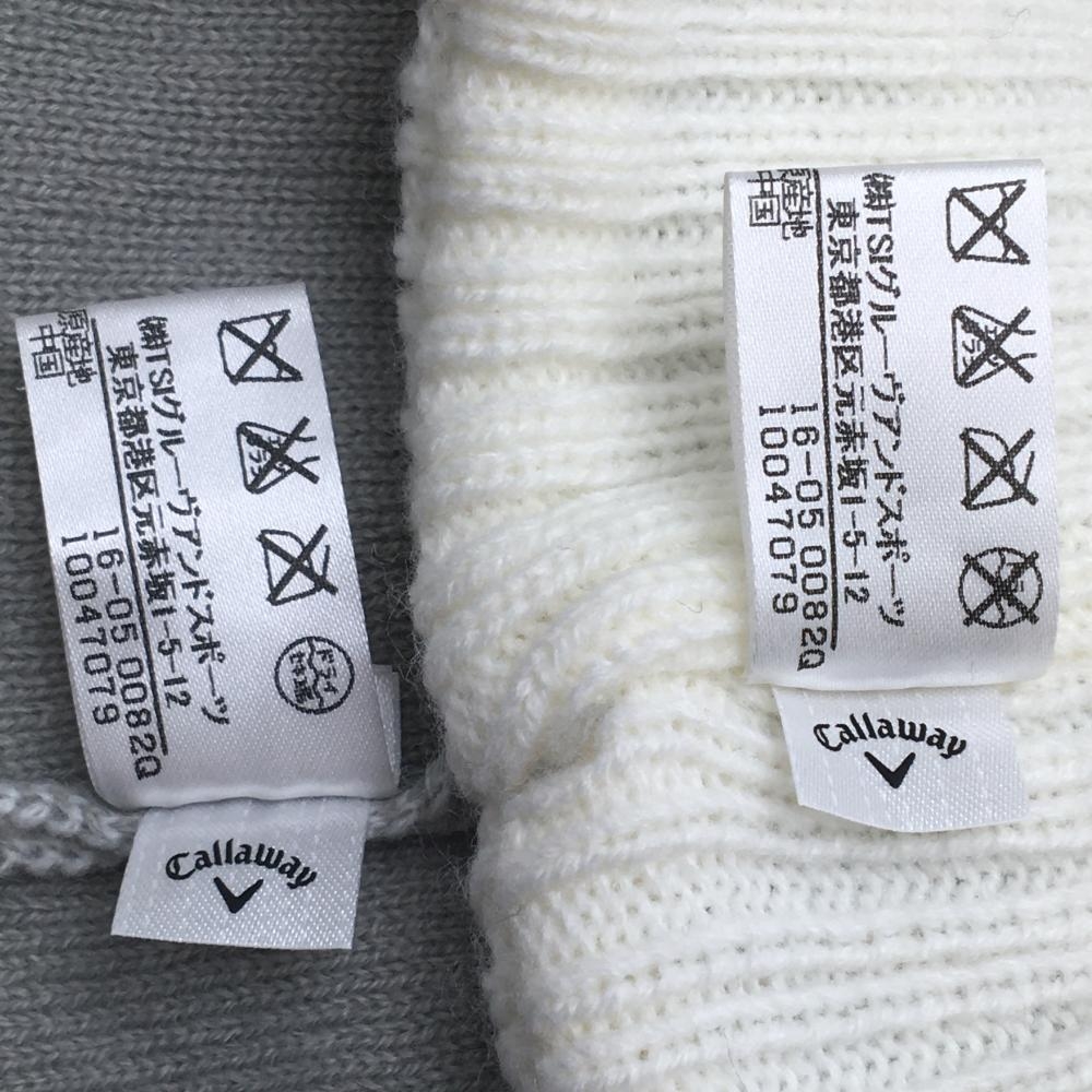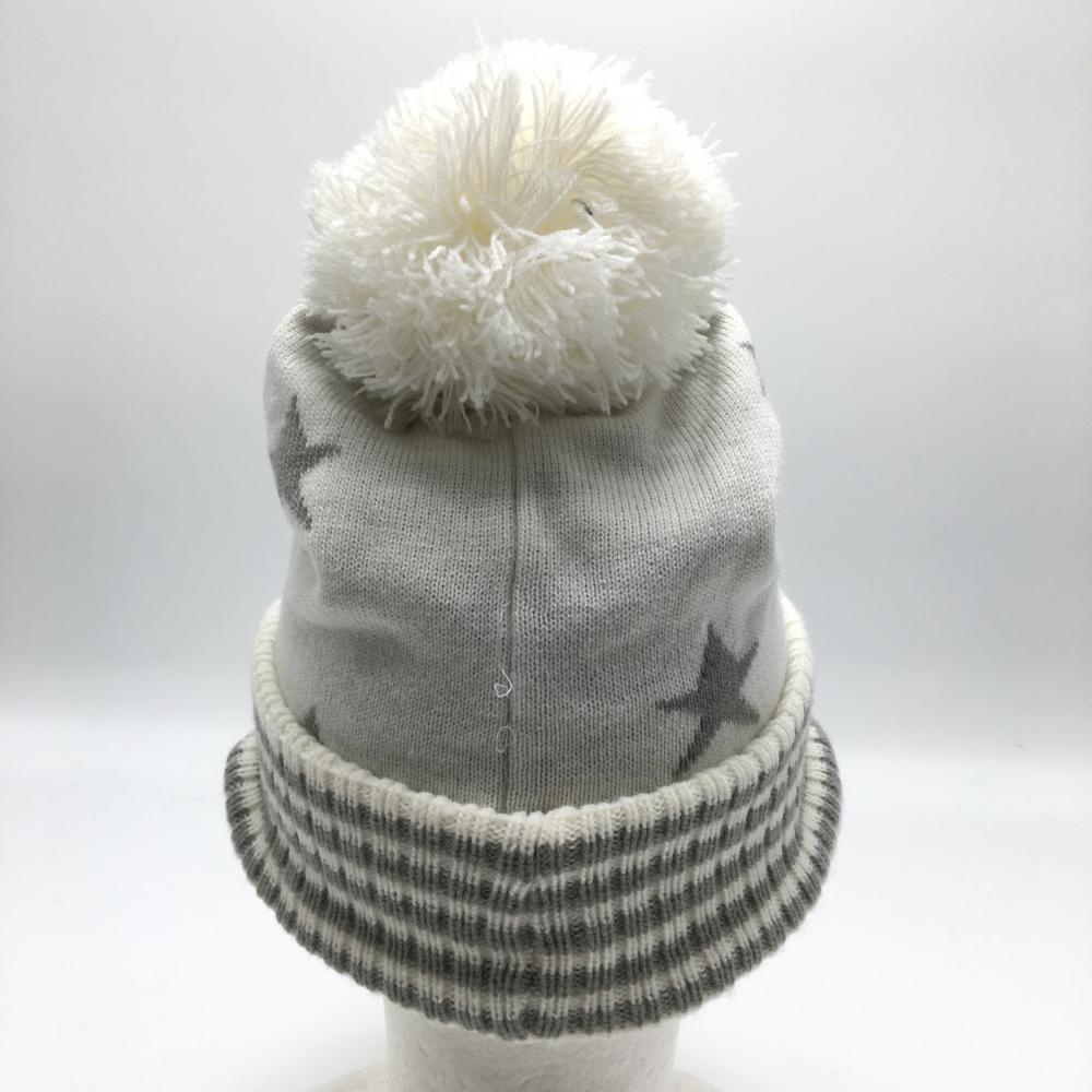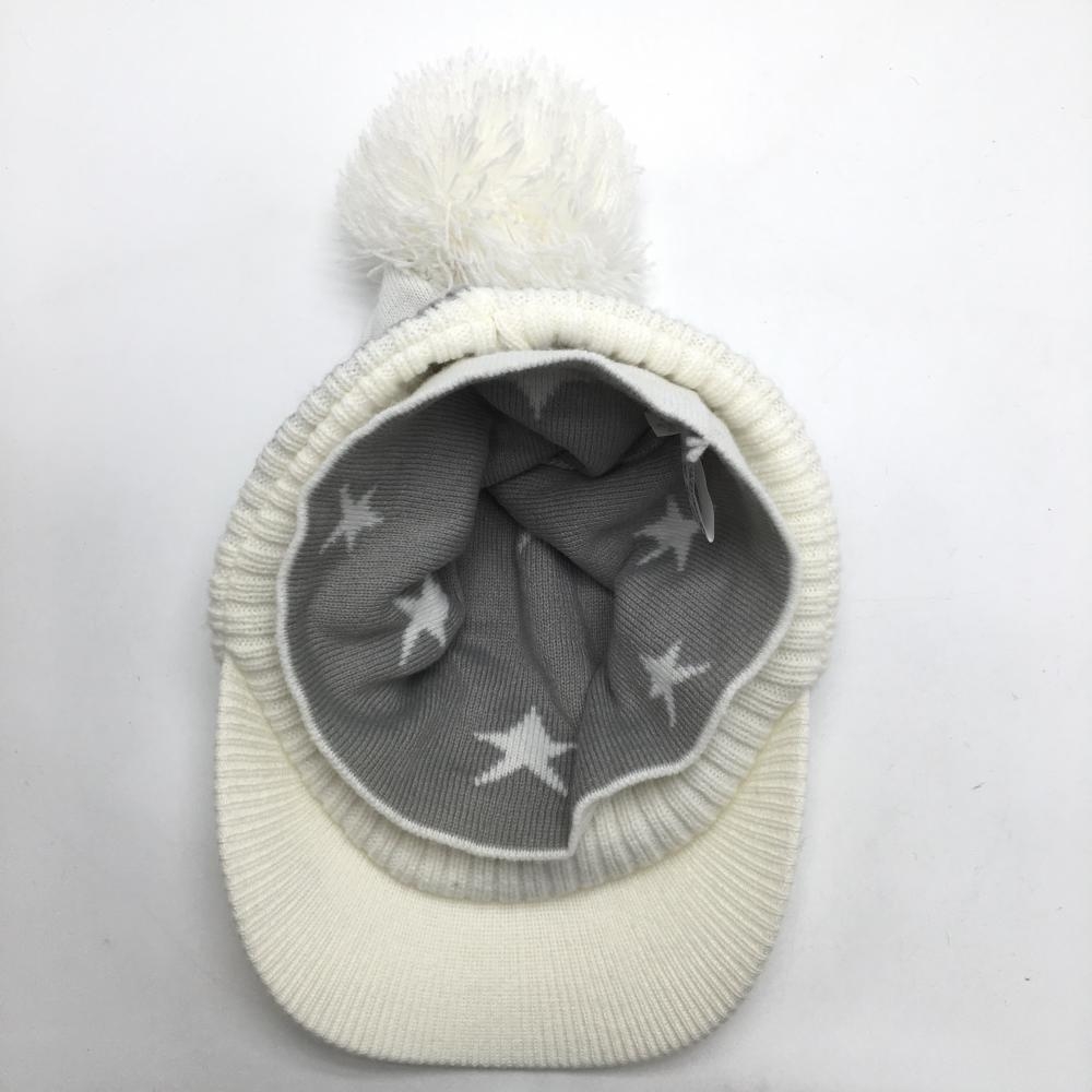 【美品】キャロウェイ サンバイザー付ニット帽 白×グレー 星柄 ボンボン FR ゴルフウェア Callaway