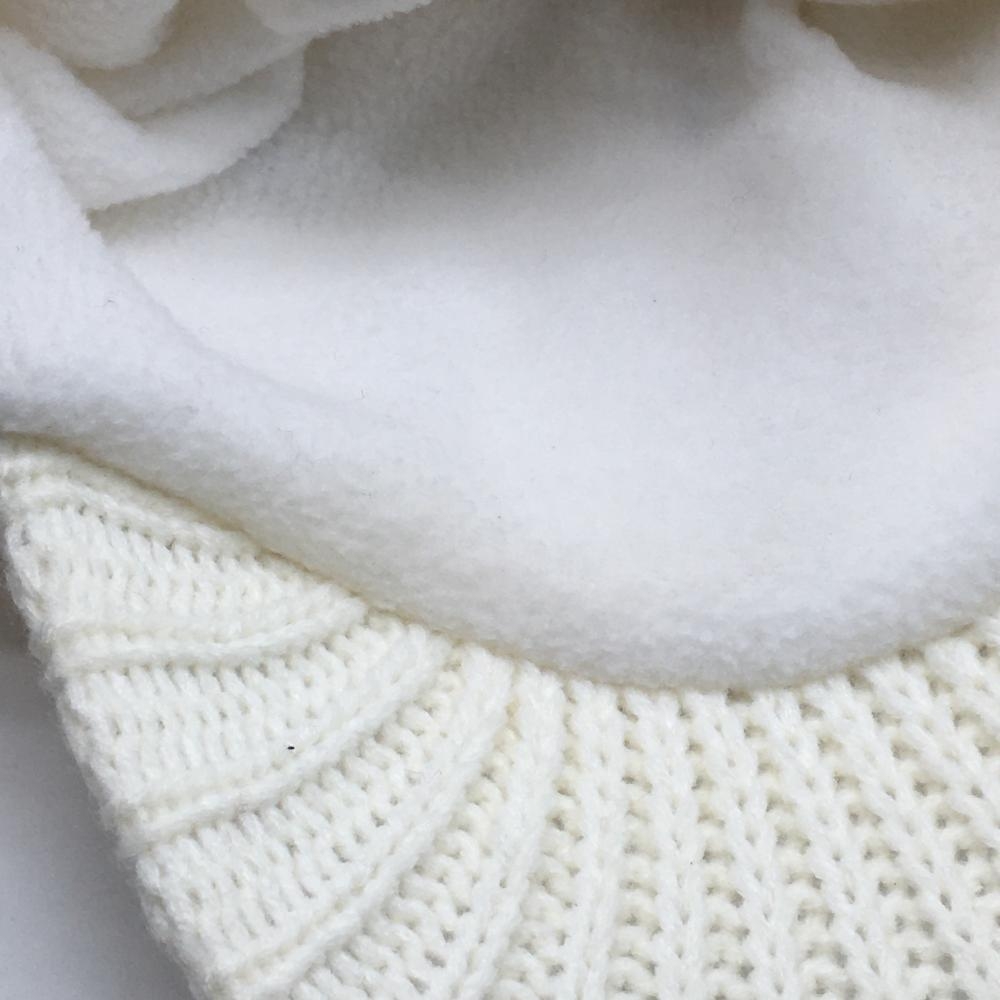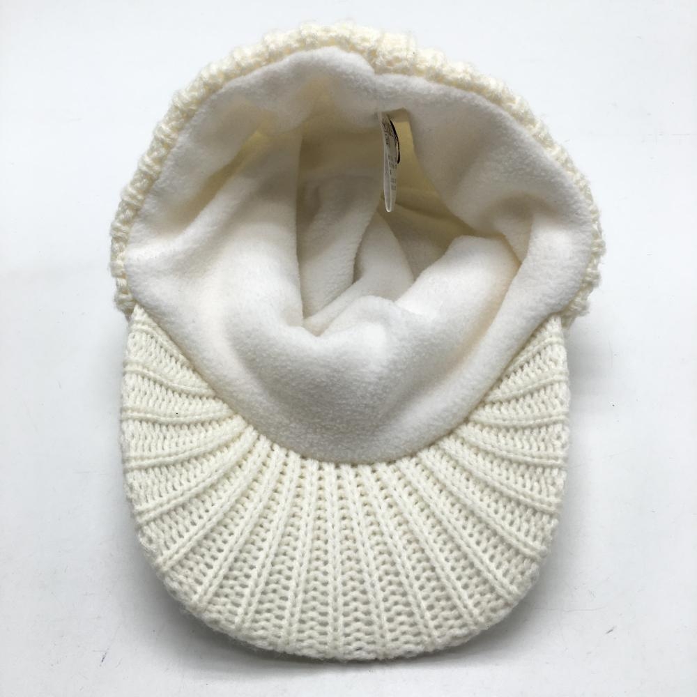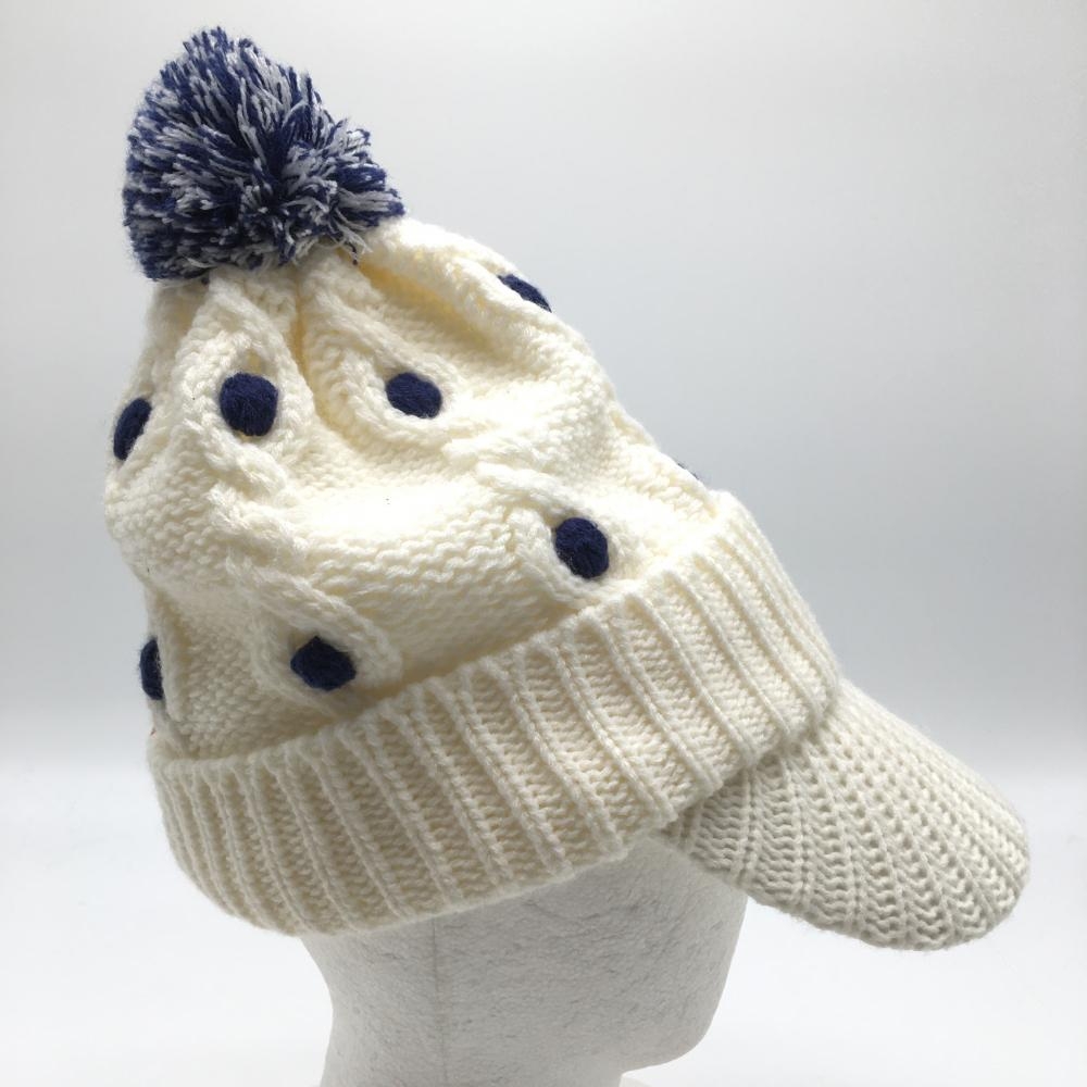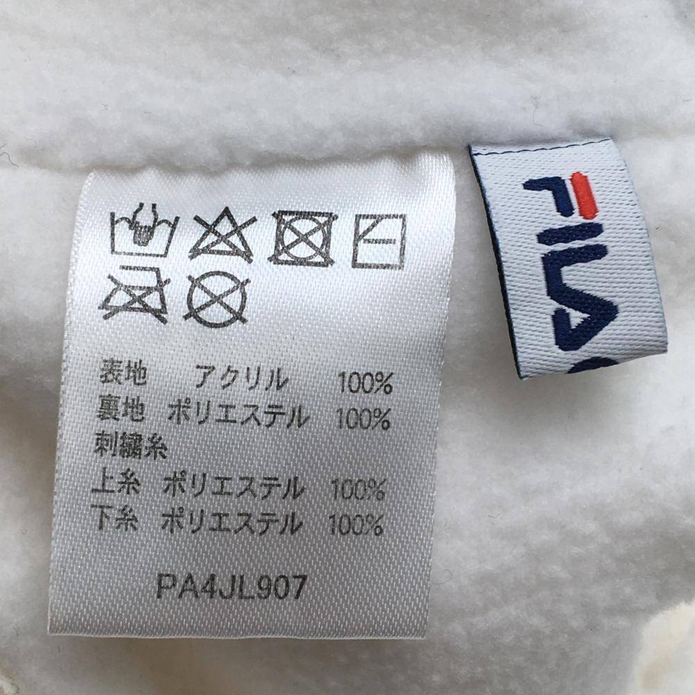 【美品】フィラゴルフ つば付ニット帽 白×ネイビー 裏地フリース アクリル100% ボンボン付 レディース 表記なし ゴルフウェア FILA GOLF