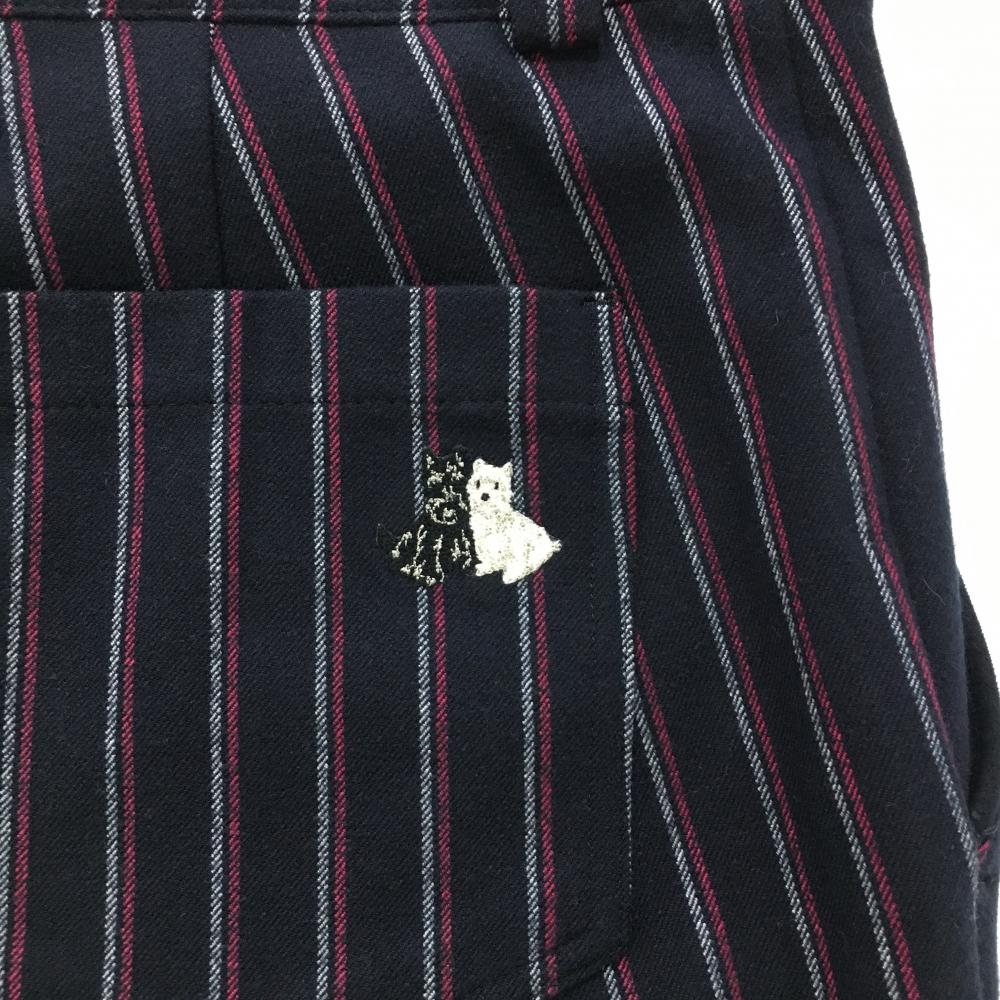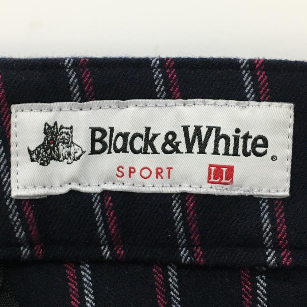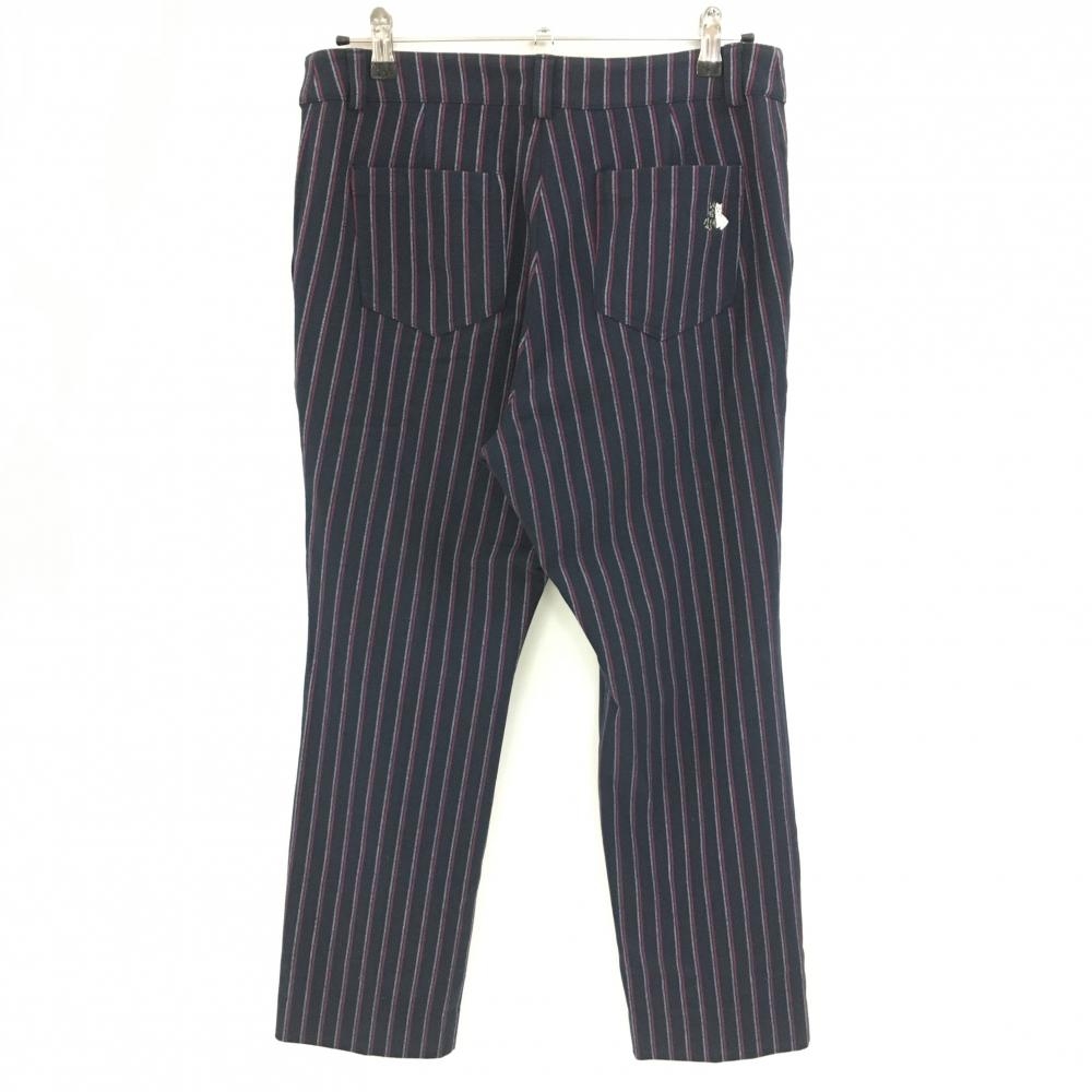 【美品】ブラックアンドホワイト パンツ ネイビー×ピンク ストライプ 秋冬 レディース LL ゴルフウェア Black&White