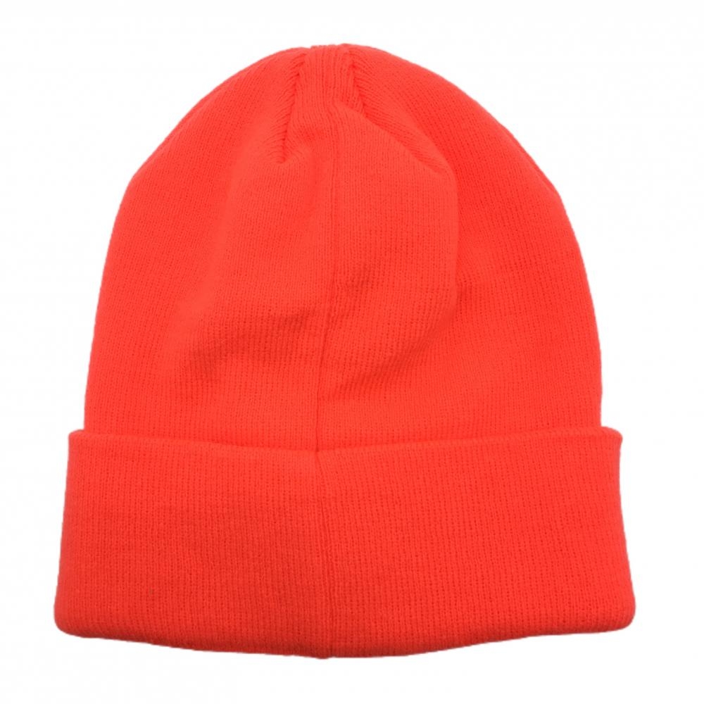 【超美品】ジャックバニー ニット帽 蛍光レッド系×黒 アクリル100% ロゴ刺しゅう FR ゴルフウェア 2023年モデル Jack Bunny