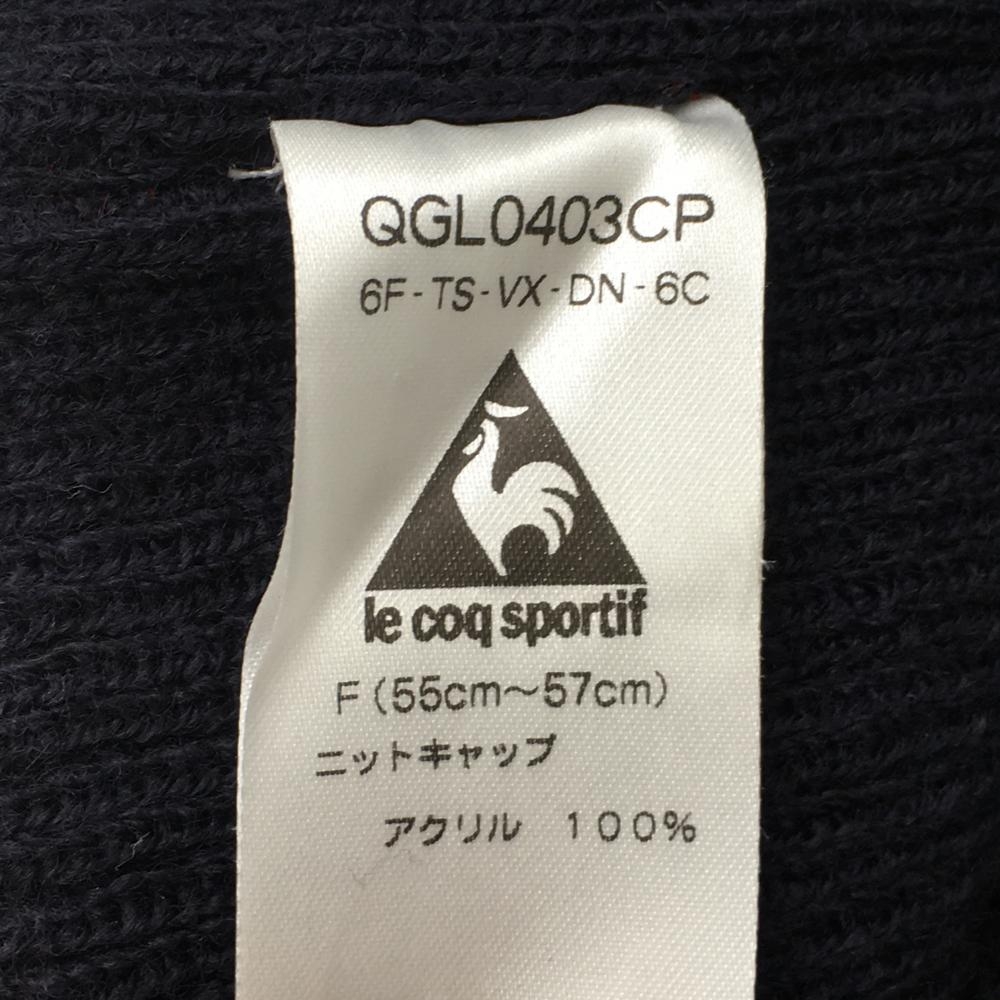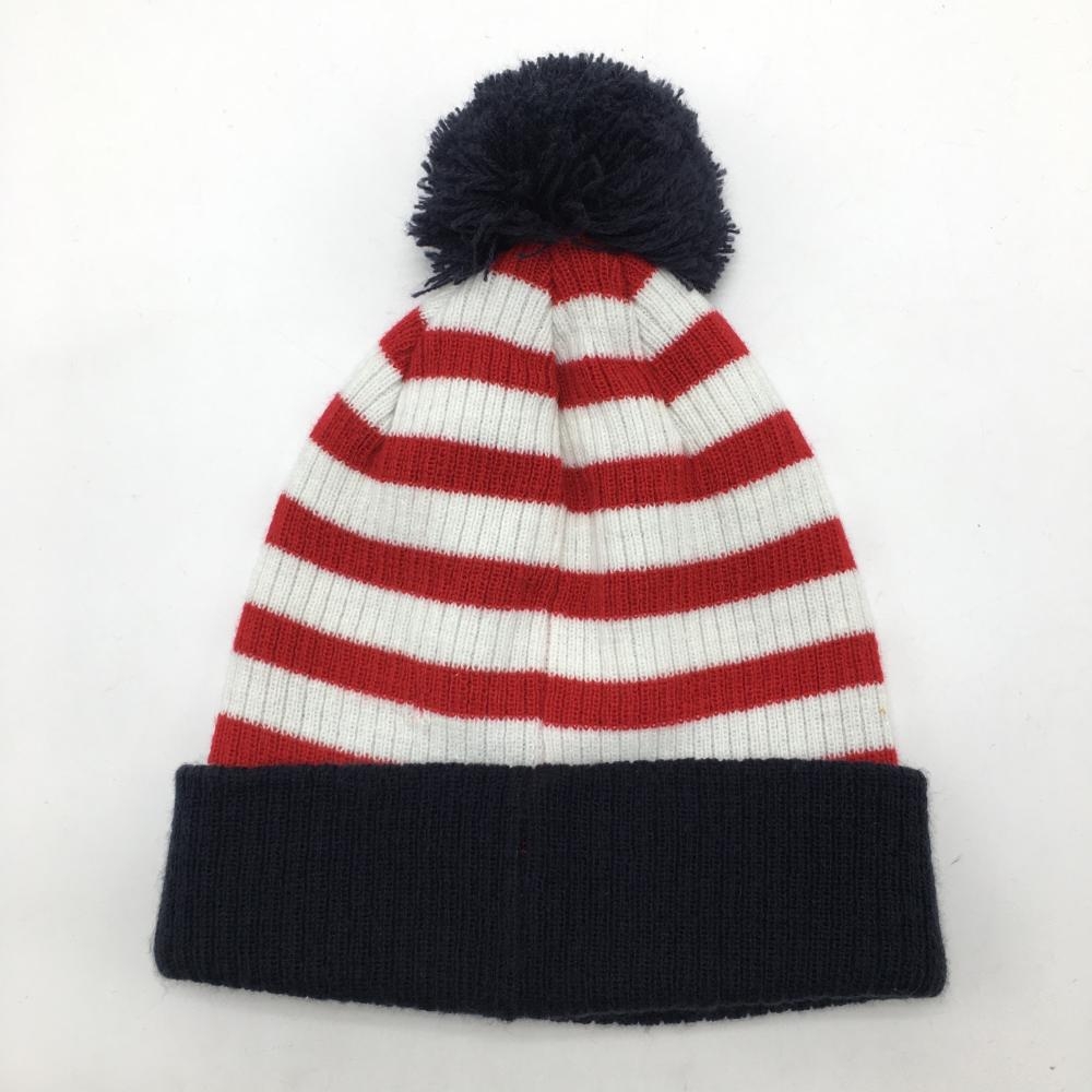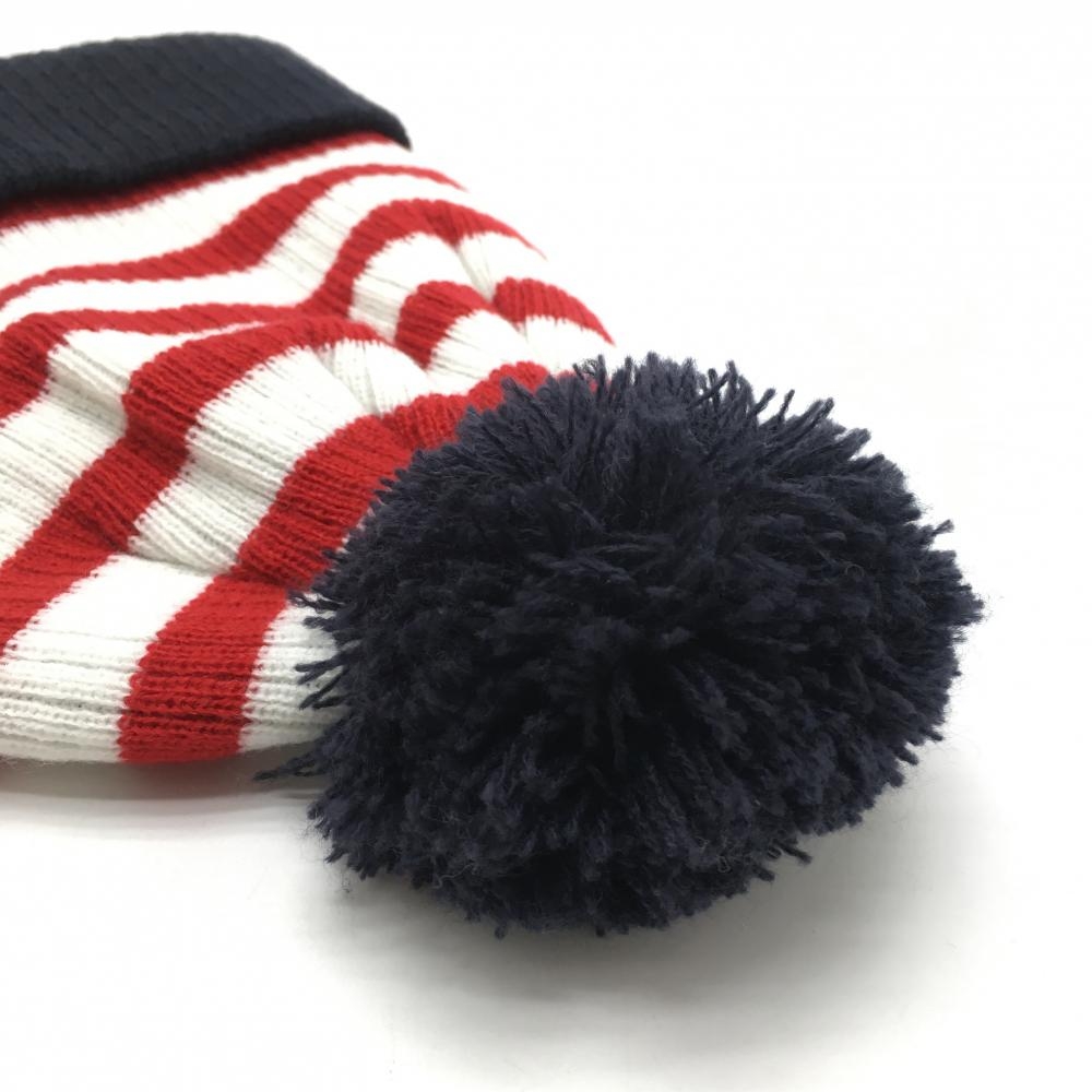 【超美品】ルコック ニット帽 白×レッド ボーダー ポンポン付 F(55-57cm) ゴルフウェア le coq sportif