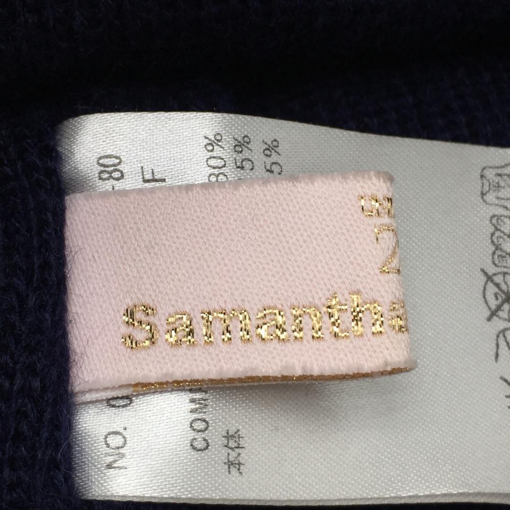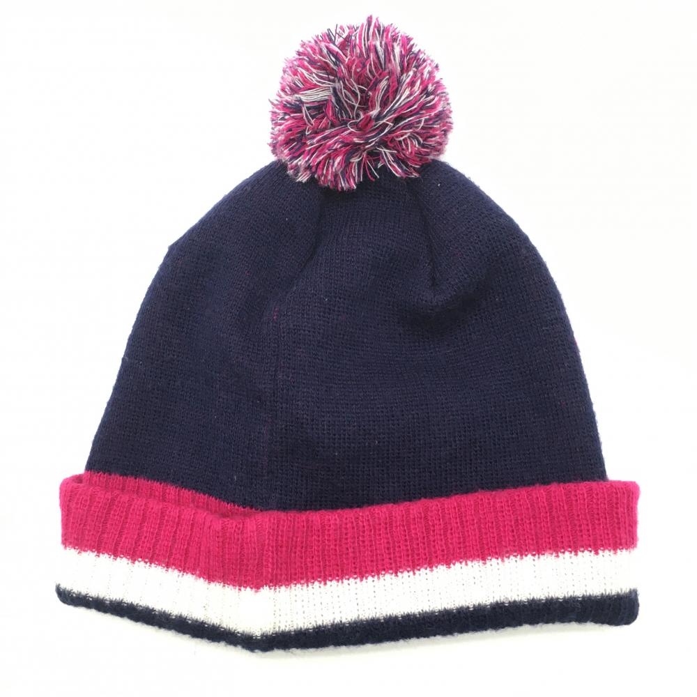 【超美品】サマンサタバサUNDER25 ニット帽 ネイビー×ピンク ロゴ ボンボン付 レディース F ゴルフウェア Samantha Thavasa