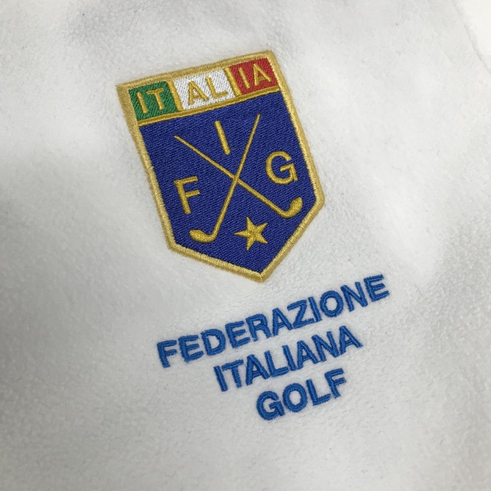 【美品】カッパ 長袖ハイネックシャツ 白×ブルー フリース 刺しゅう メンズ M ゴルフウェア Kappa