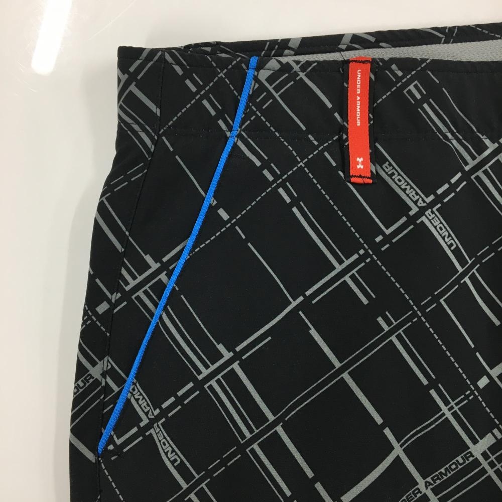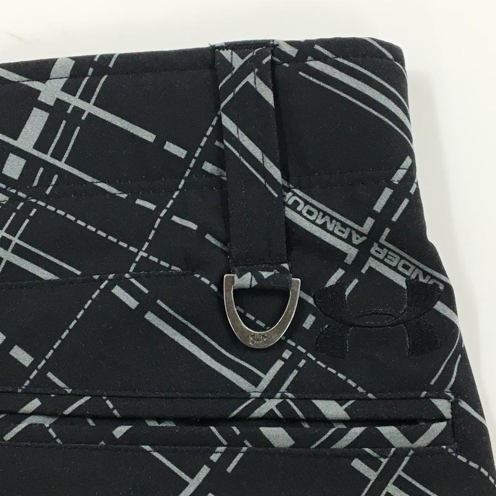 【美品】アンダーアーマー パンツ 黒×グレー 斜め格子柄 裏微起毛 メンズ 88 ゴルフウェア UNDER ARMOUR