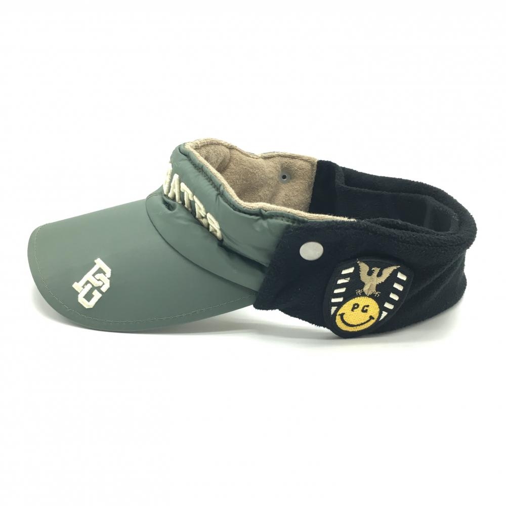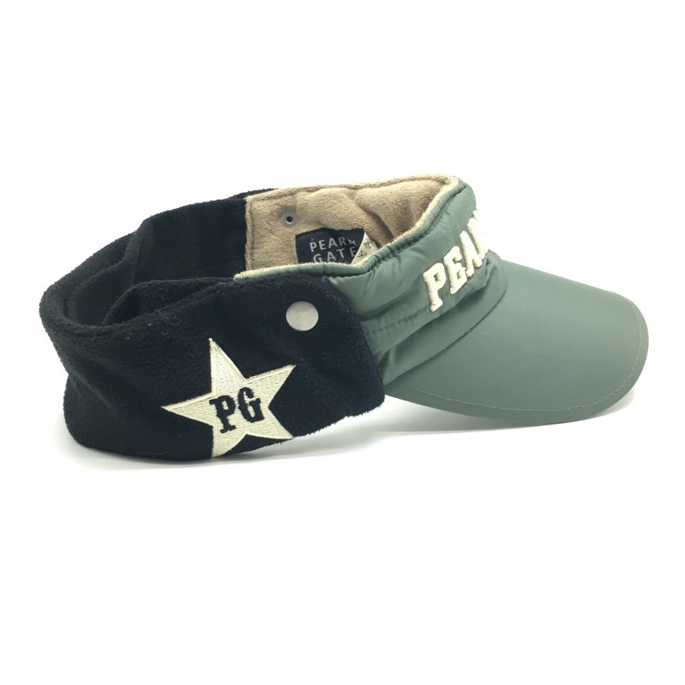 パーリーゲイツ 耳当て付サンバイザー カーキ×黒 後フリース つば汚れ、毛羽立ち FR ゴルフウェア PEARLY GATES