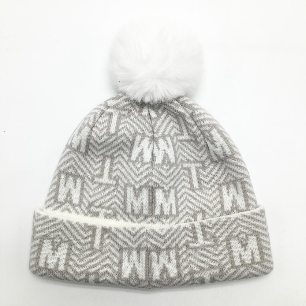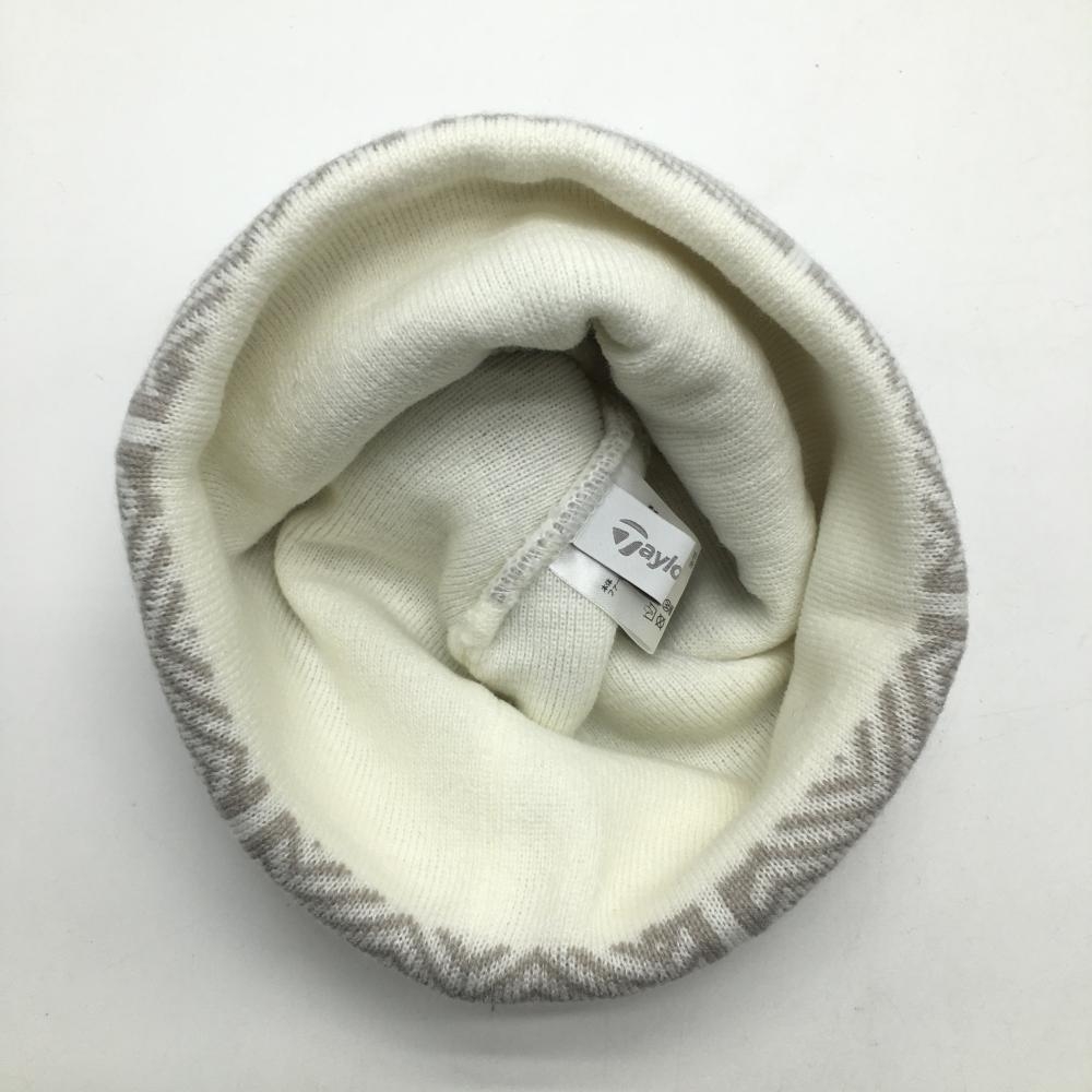 【超美品】テーラーメイド ニット帽 ライトグレー×白 英字総柄 レディース フリー(55-57cm) ゴルフウェア 2023年モデル TaylorMade