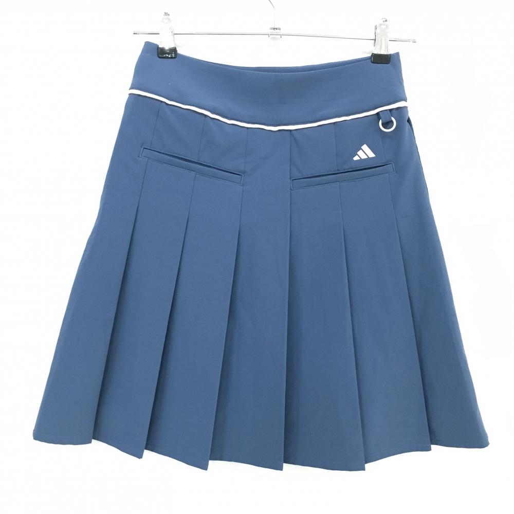 【新品】アディダス プリーツスカート スモーキーブルー×白系 内側インナーパンツ レディース S ゴルフウェア 2023年モデル adidas