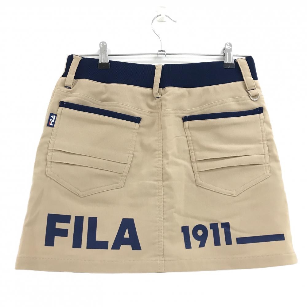【美品】フィラゴルフ スカート ライトブラウン×ネイビー 後裾ロゴ 裏起毛 内側インナーパンツ レディース M ゴルフウェア FILA GOLF