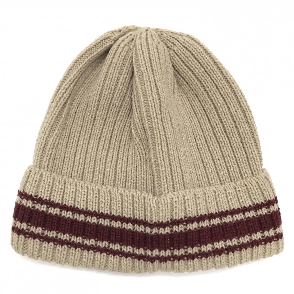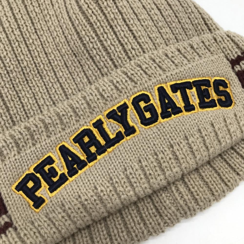 【超美品】パーリーゲイツ ニット帽 ベージュ×ボルドー 立体ロゴ刺しゅう FR ゴルフウェア 2024年モデル PEARLY GATES