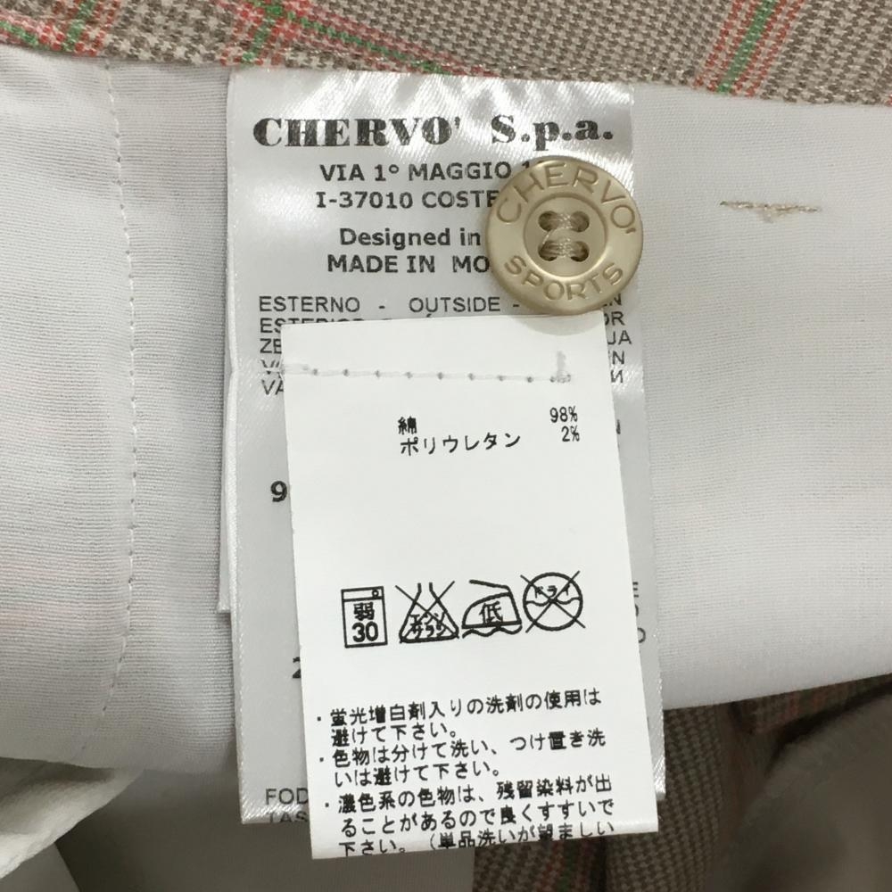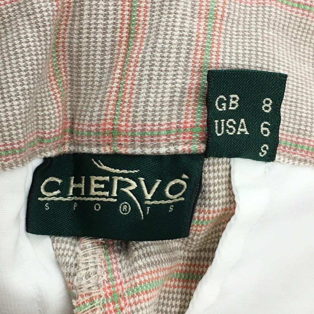 シェルボ パンツ ベージュ系×ライトグリーン チェック レディース USA6-S ゴルフウェア CHERVO