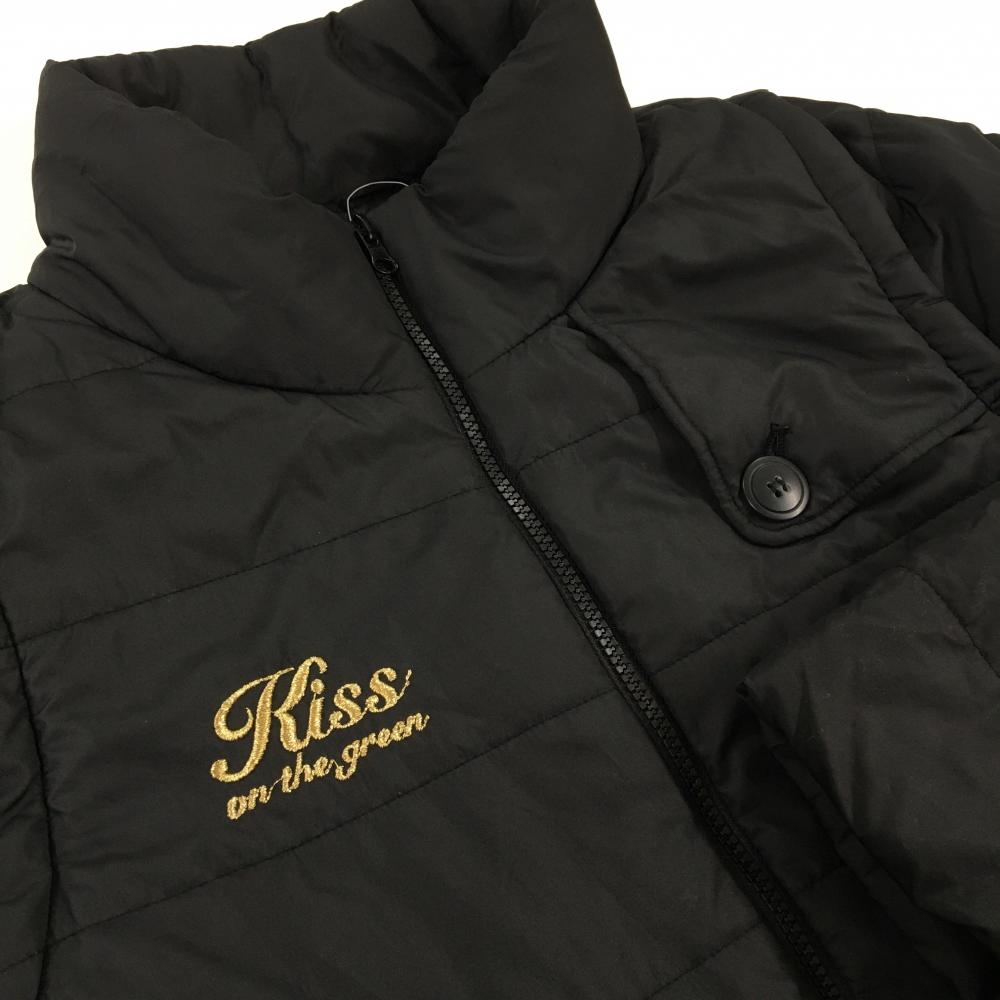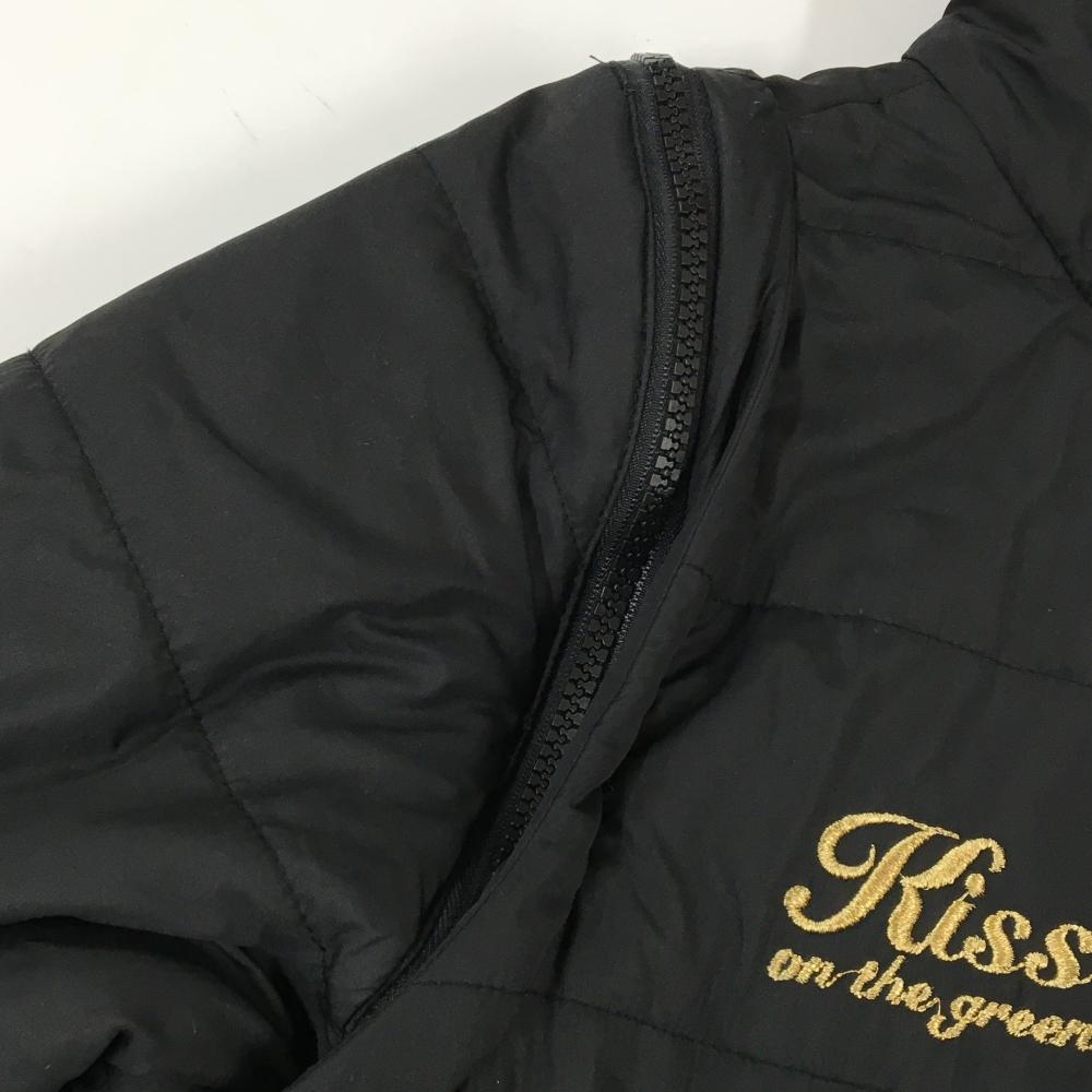 キスオンザグリーン 中綿ロングジャケット 黒 ロゴ刺しゅう ベルト付 レディース M ゴルフウェア kiss on the green