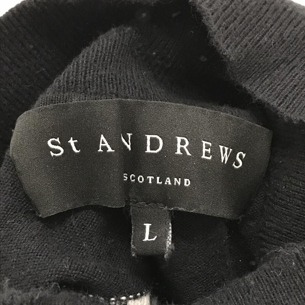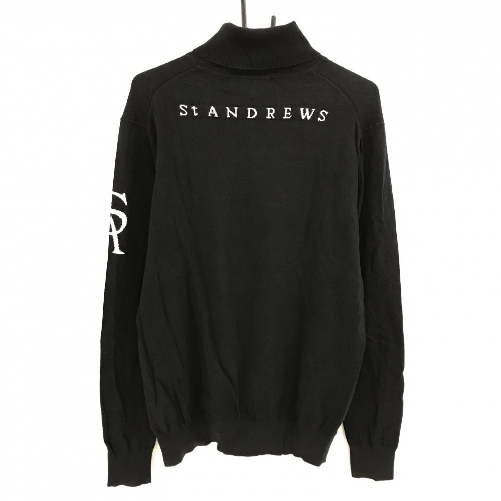 セントアンドリュース タートルネックセーター 黒×白 ニット コットン混 ハイネック メンズ L ゴルフウェア St ANDREWS