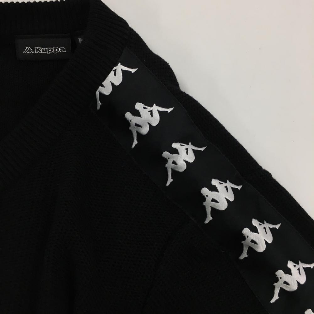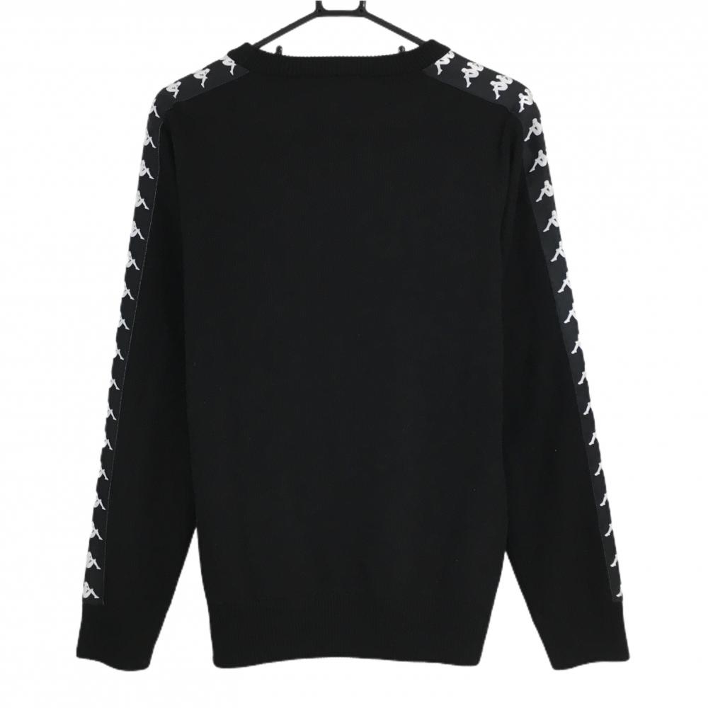 【美品】カッパ セーター 黒×白 ニット 袖ロゴテープ 羊毛混 メンズ M ゴルフウェア Kappa
