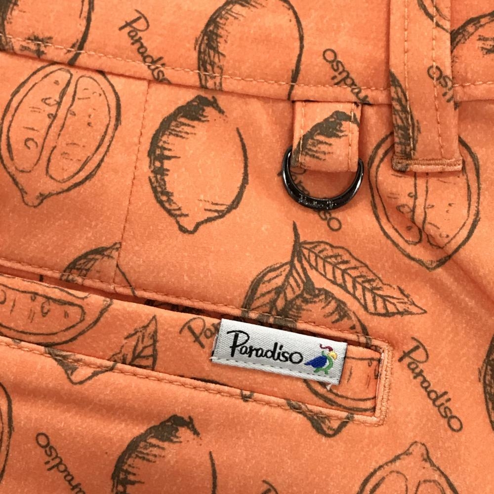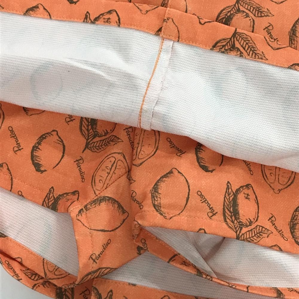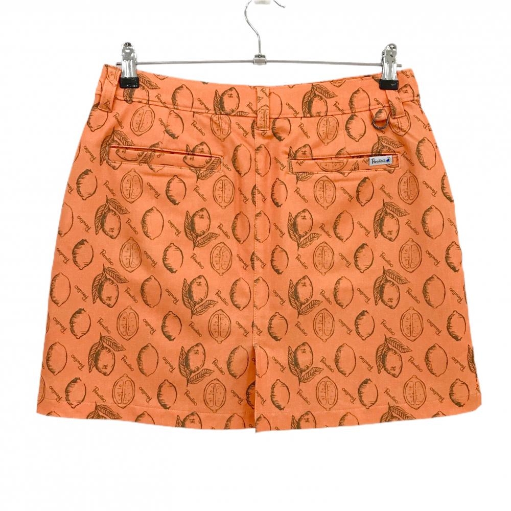 【美品】パラディーゾ スカート オレンジ×カーキ レモン総柄 内側インナーパンツ レディース L ゴルフウェア Paradiso