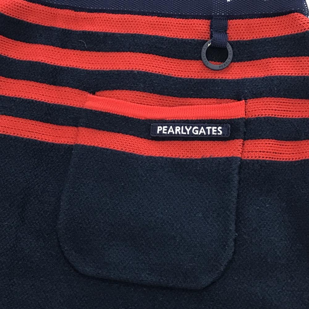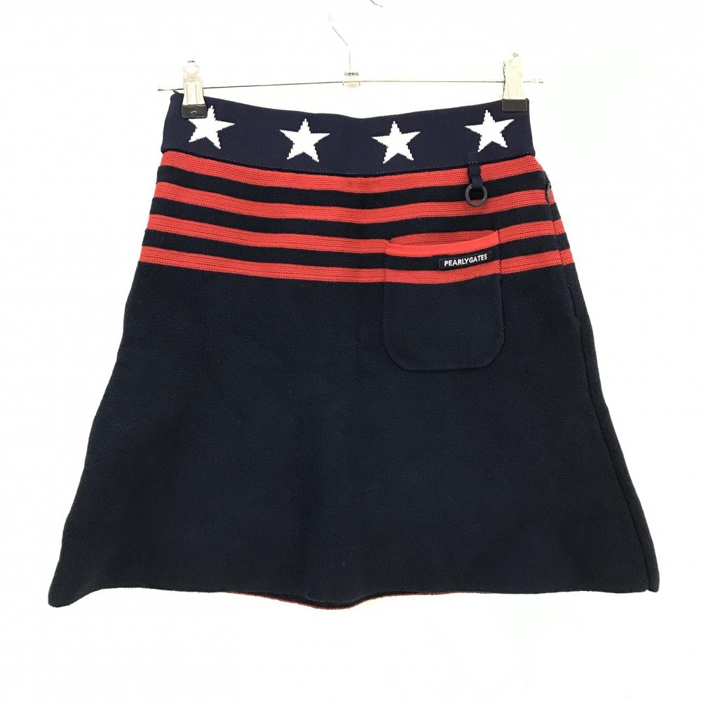 【美品】パーリーゲイツ ニットスカート ネイビー×レッド ウエスト星柄 一部ボーダー レディース 0(S) ゴルフウェア PEARLY GATES