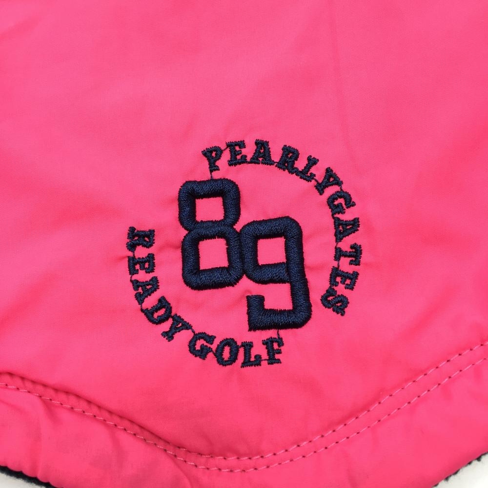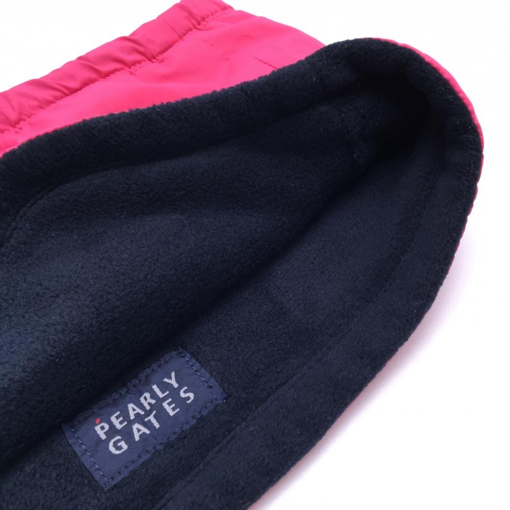 【美品】パーリーゲイツ ネックウォーマー ピンク×ネイビー 裏起毛 ドローコード ゴルフウェア PEARLY GATES