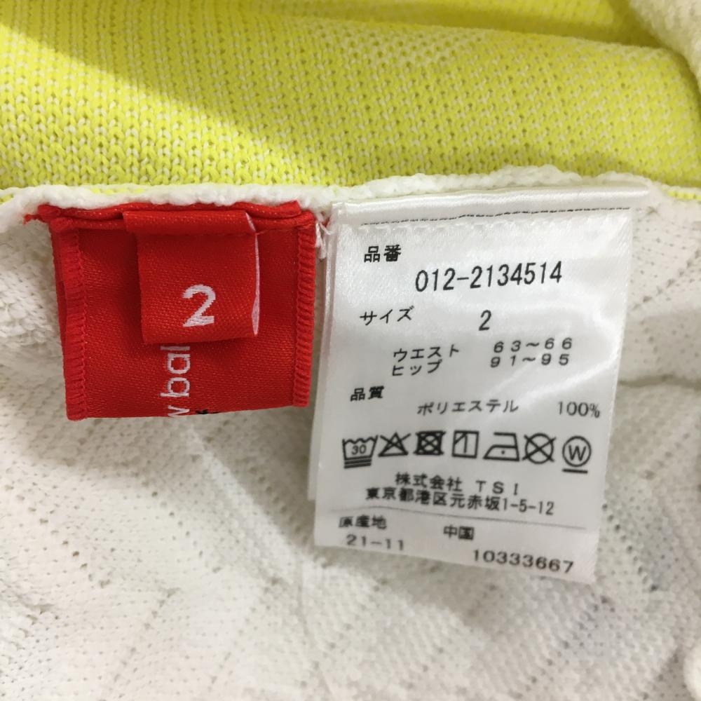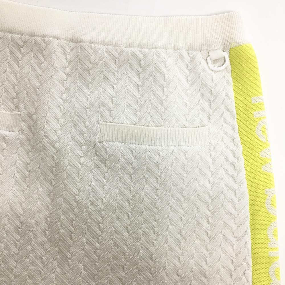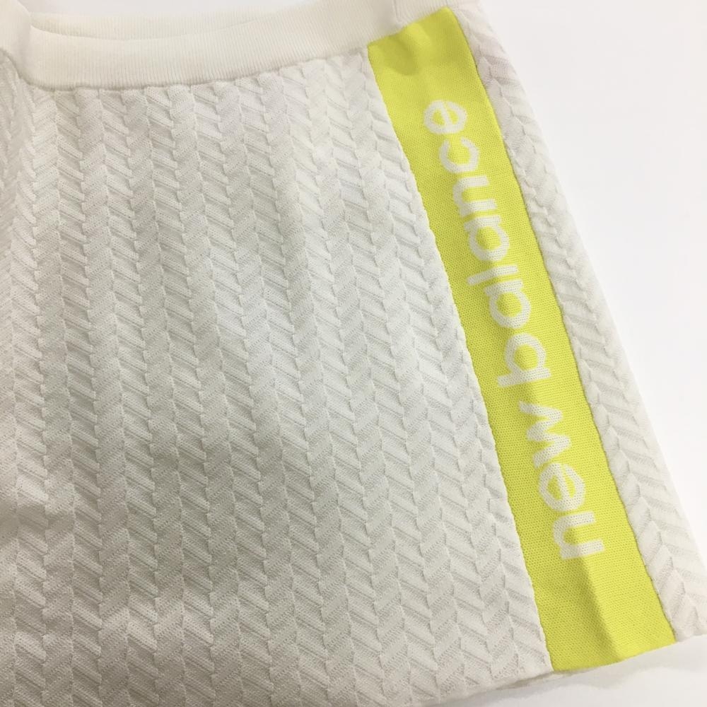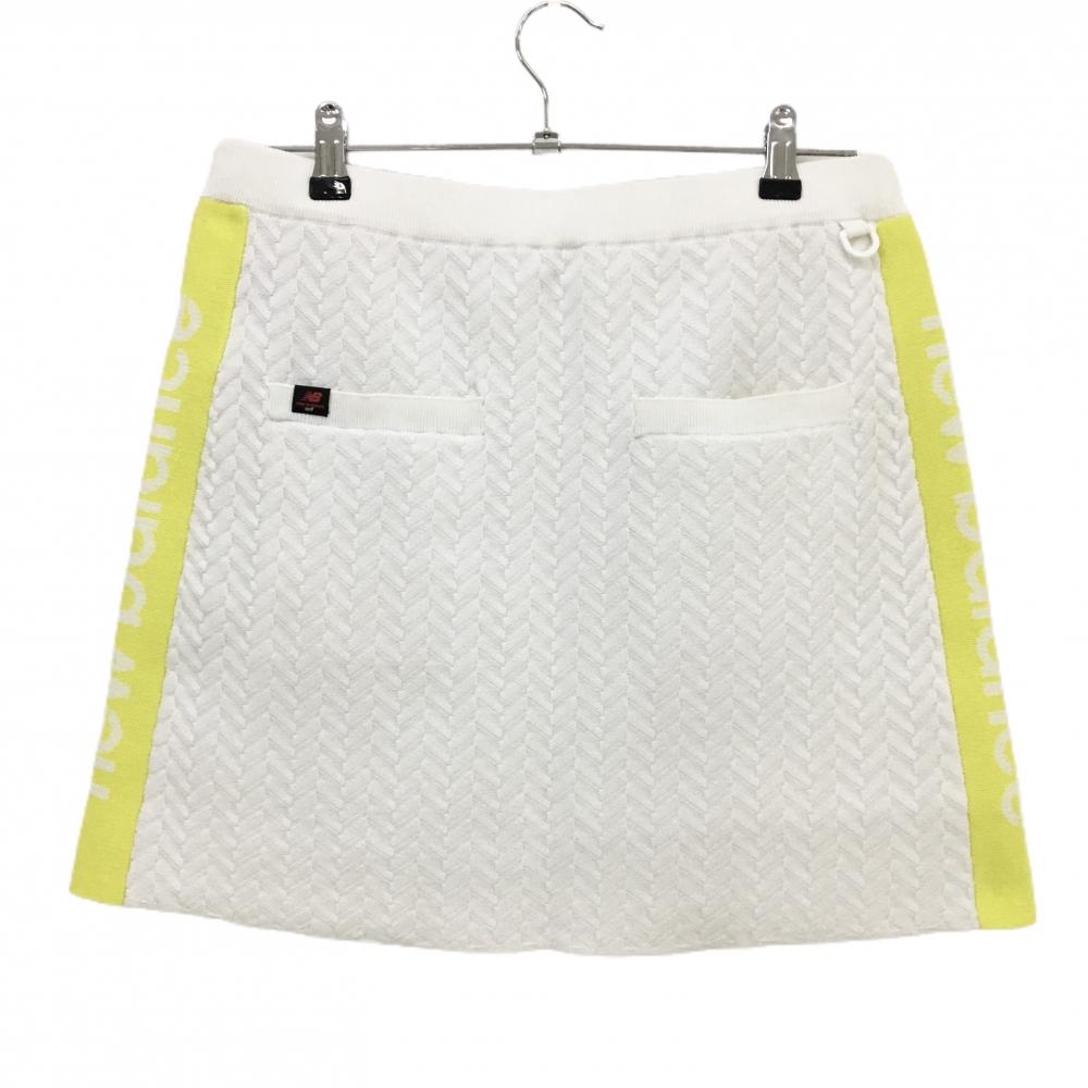 【超美品】ニューバランス ニットスカート 白 ヘリンボーン編み サイドイエロー レディース 2(L) ゴルフウェア New Balance