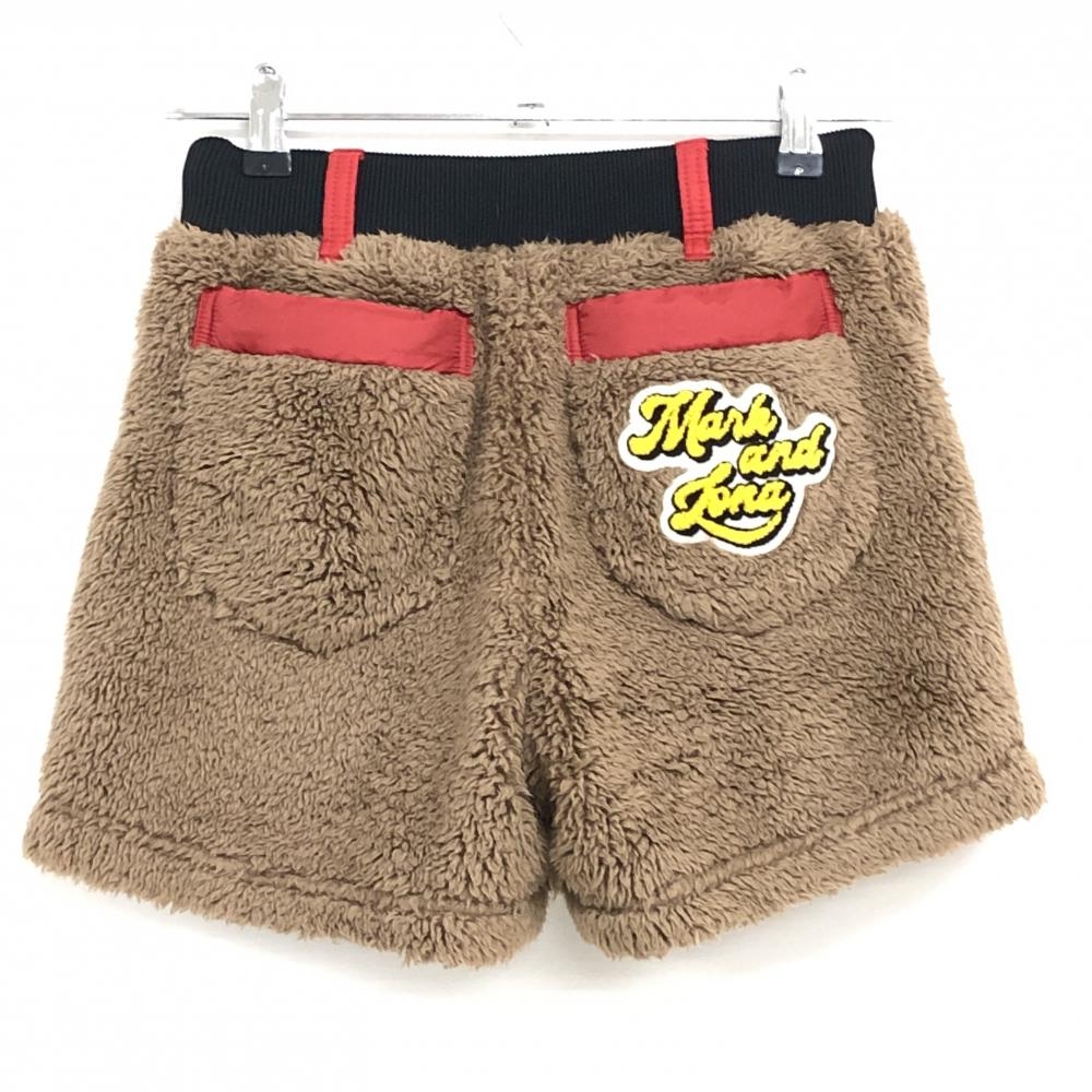 【美品】マークアンドロナ ボアショートパンツ ブラウン×レッド ウエストゴム 裏地 レディース 36(S) ゴルフウェア MARK&LONA