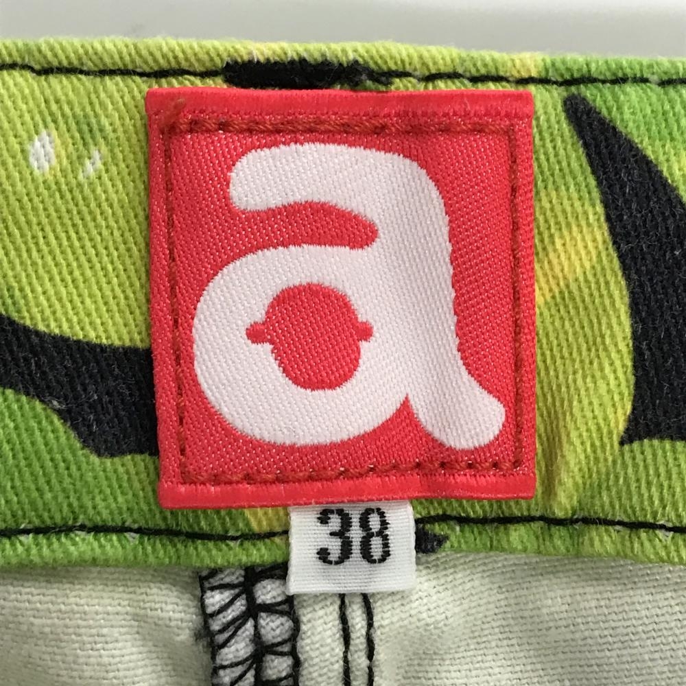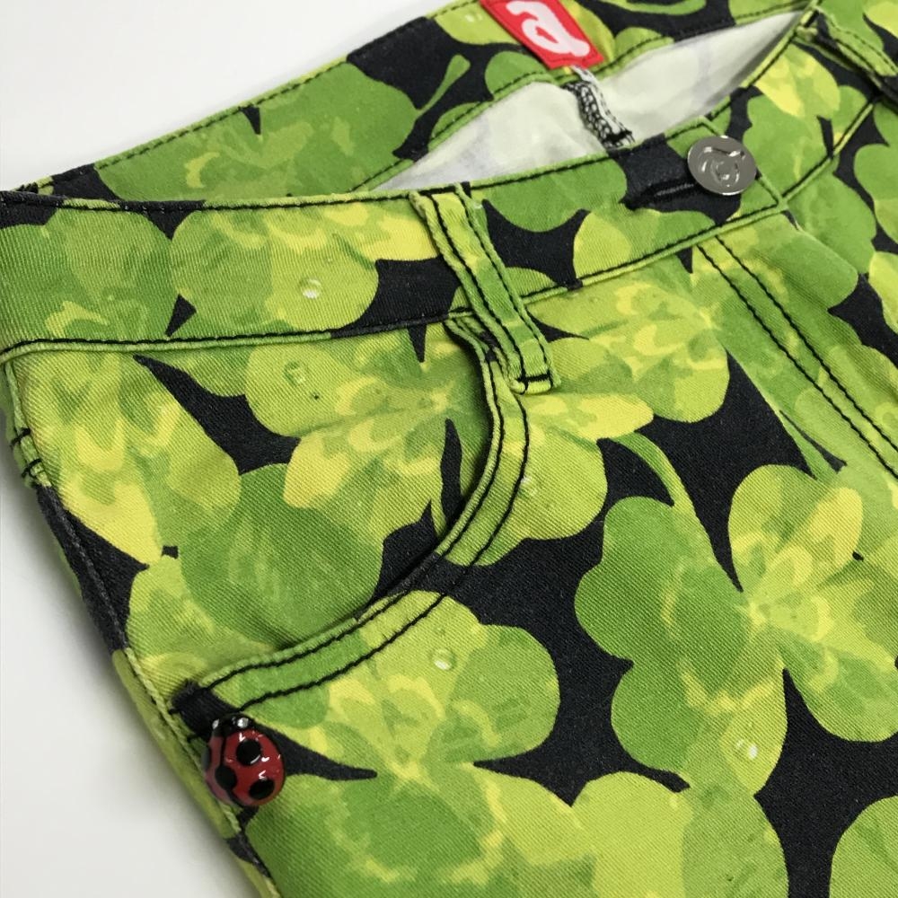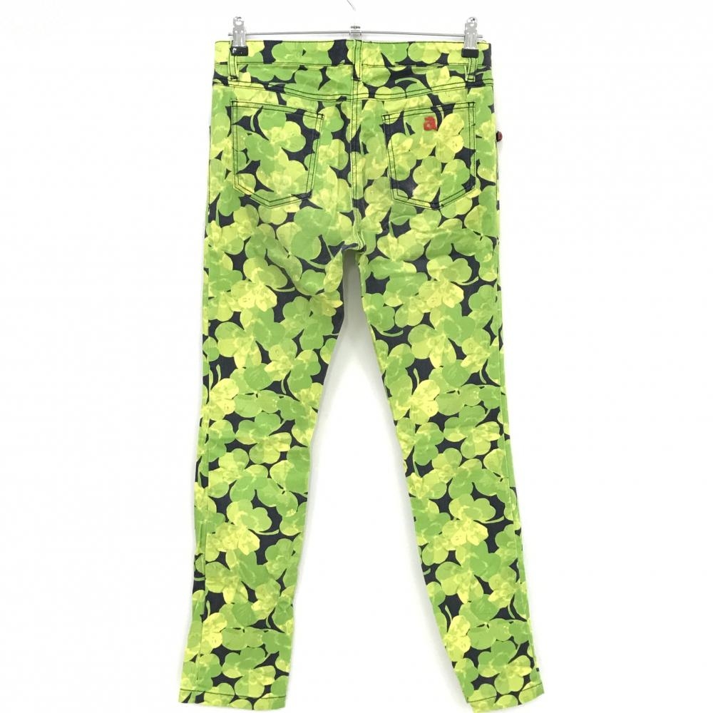 アルチビオ パンツ 黒×ライトグリーン クローバー柄 ストレッチ レディース 38(M) ゴルフウェア archivio