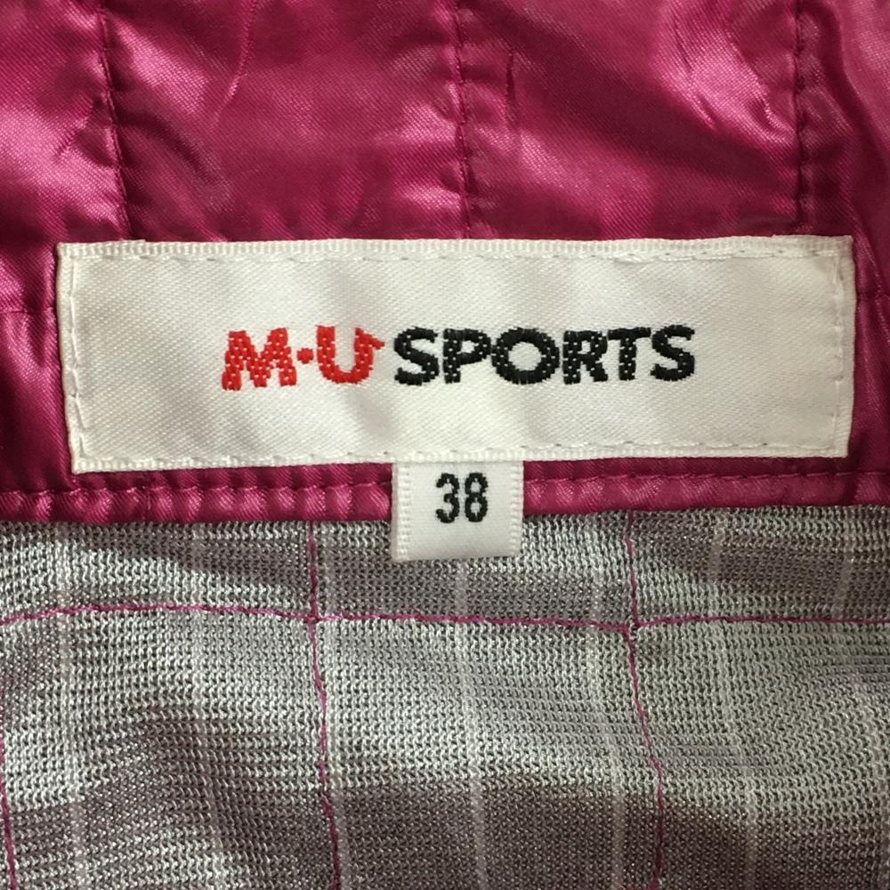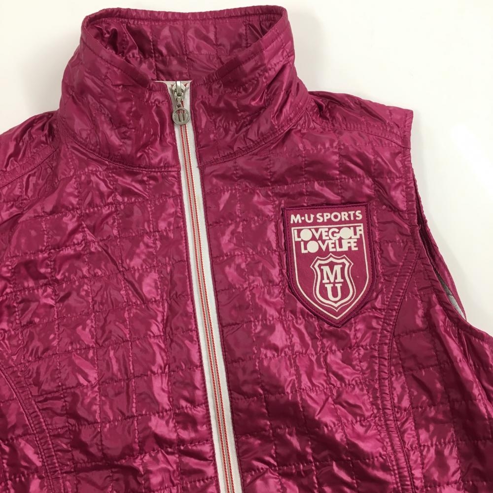 【美品】MUスポーツ 中綿ノースリーブワンピース ピンク×白 ワッペン 薄中綿 レディース 38(S) ゴルフウェア M・U SPORTS