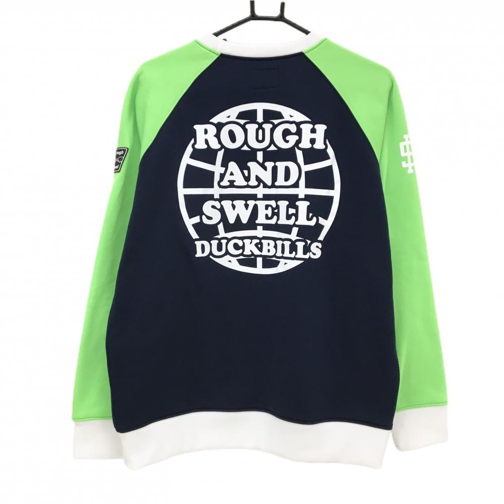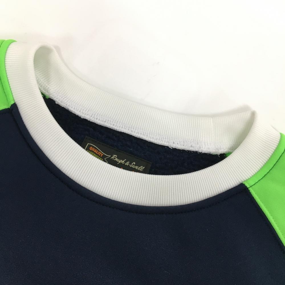 【超美品】ラフアンドスウェル トレーナー ネイビー×蛍光グリーン 裏起毛 メンズ L ゴルフウェア rough&swell