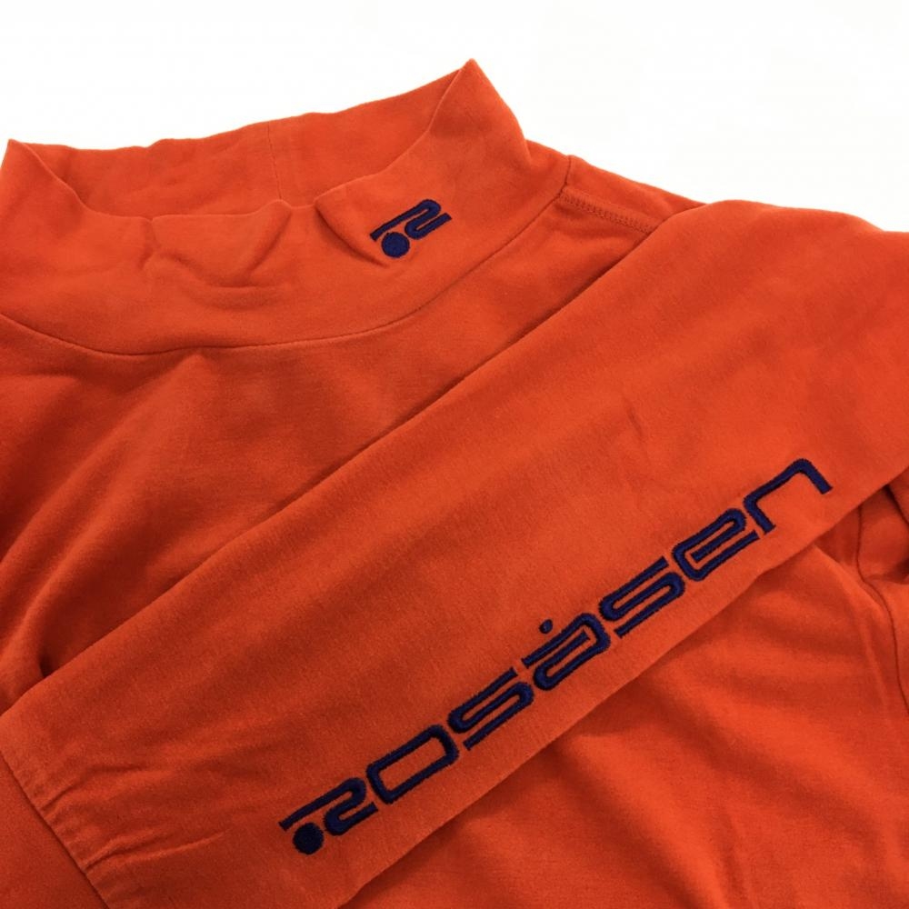 【美品】ロサーセン 長袖ハイネックシャツ オレンジ×ブルー 表微起毛 アクリル混 メンズ L ゴルフウェア Rosasen