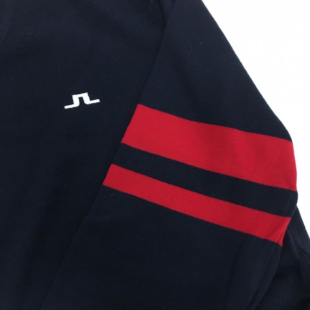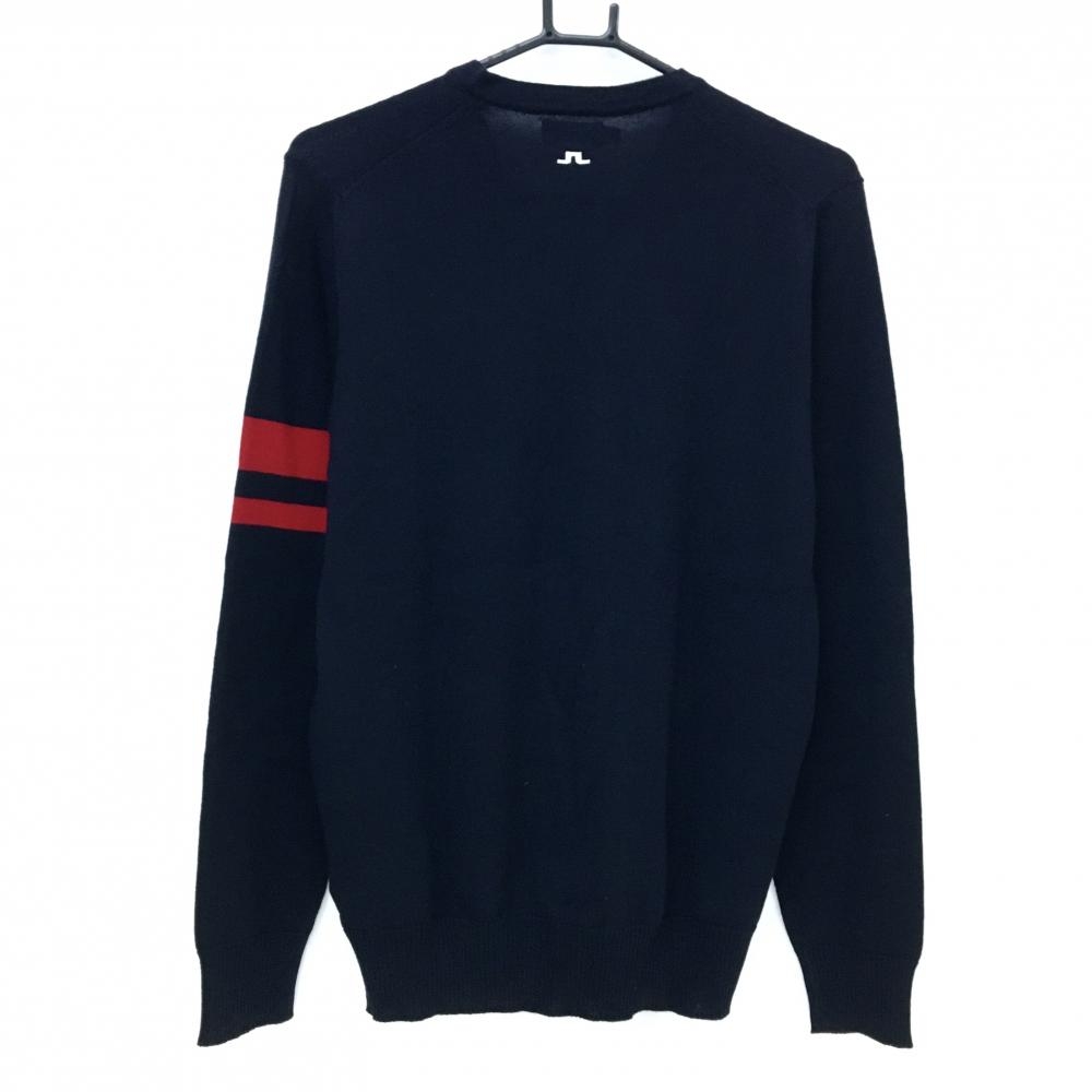 【超美品】ジェイリンドバーグ セーター ダークネイビー×レッド ニット ウール100% Vネック 薄手 メンズ S ゴルフウェア J.LINDEBERG