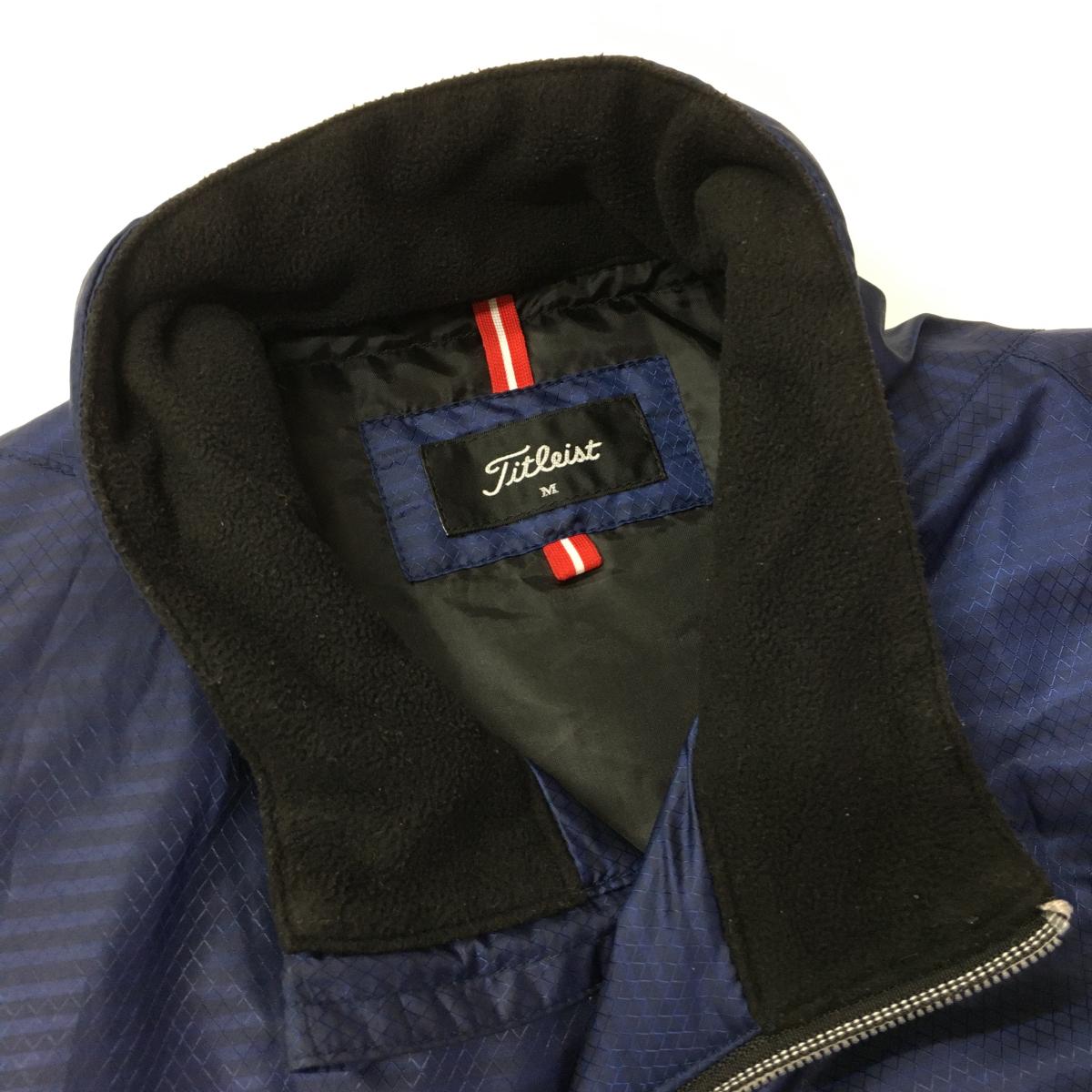 【美品】タイトリスト 中綿ジャケット ネイビー ダイヤ柄×ボーダー地模様 襟裏フリース メンズ M ゴルフウェア TITLEIST