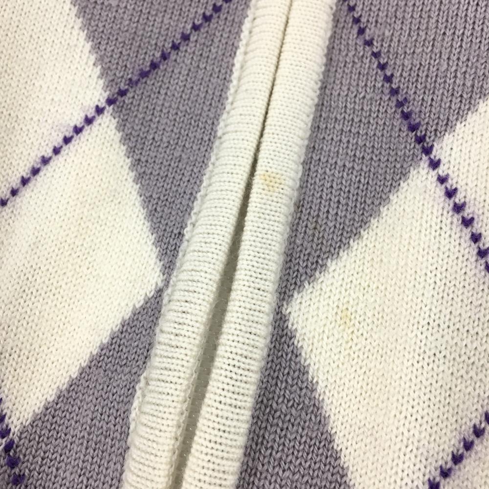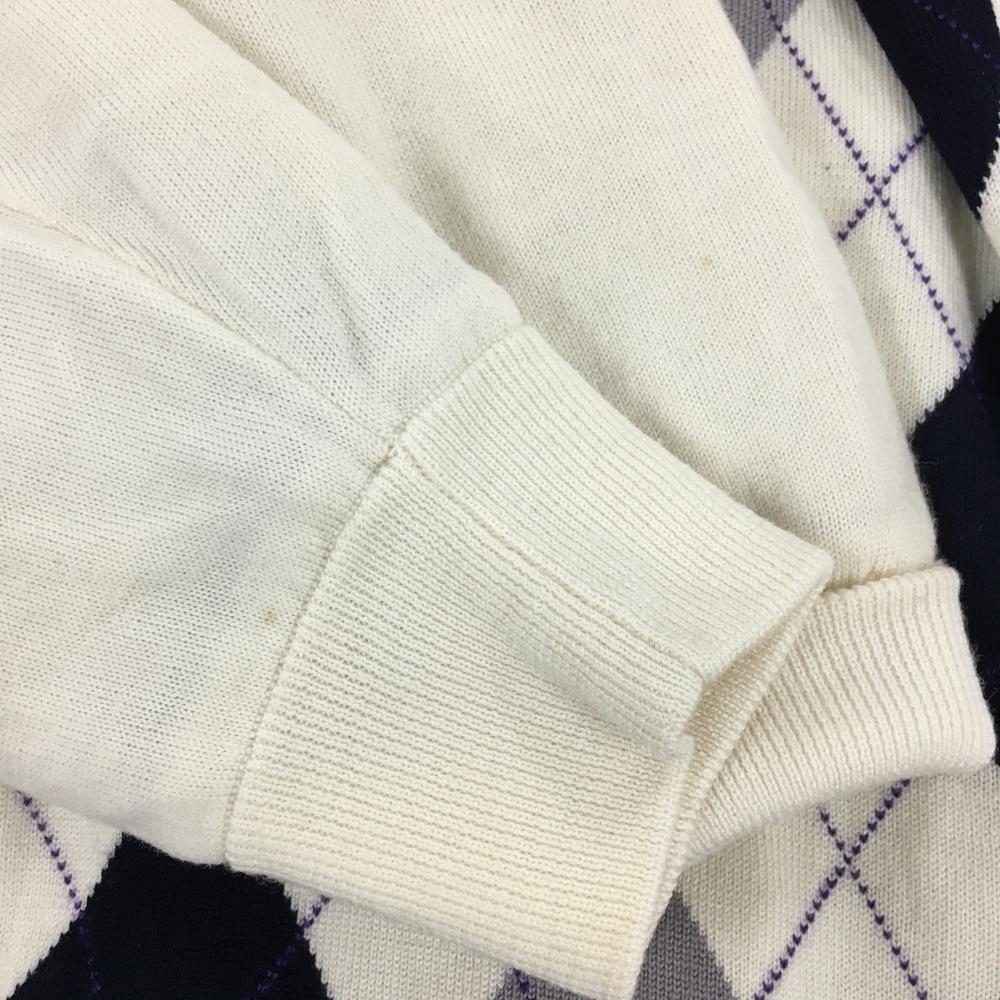 【美品】アシュワース ニットジャケット アイボリー×ネイビー×パープル アーガイル 蓄熱裏地 メンズ L ゴルフウェア ASHWORTH