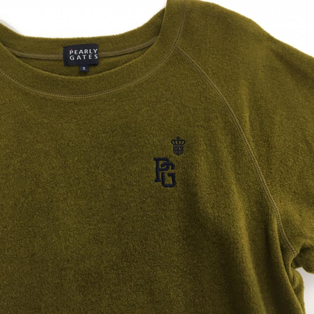 【超美品】パーリーゲイツ Tシャツ カーキ 起毛素材 ウール混 メンズ 5(L) ゴルフウェア PEARLY GATES