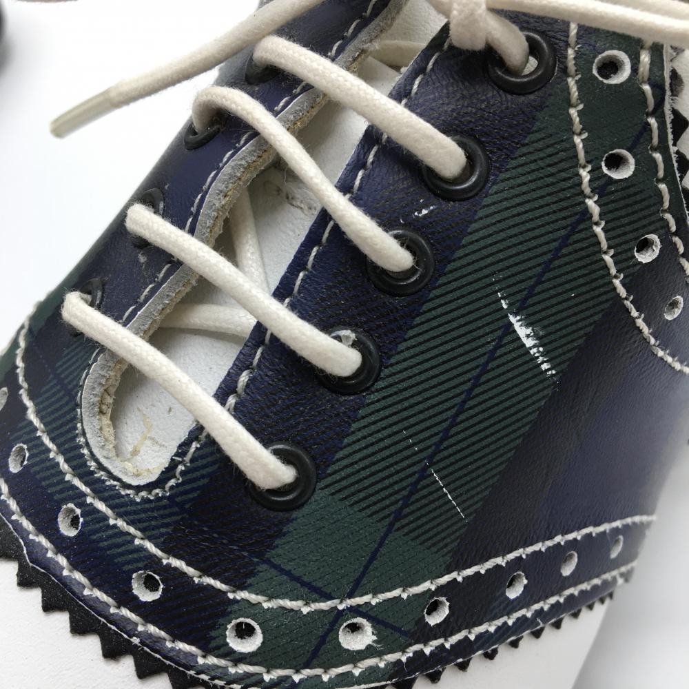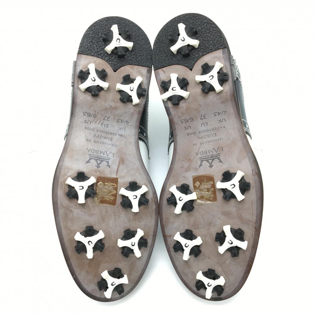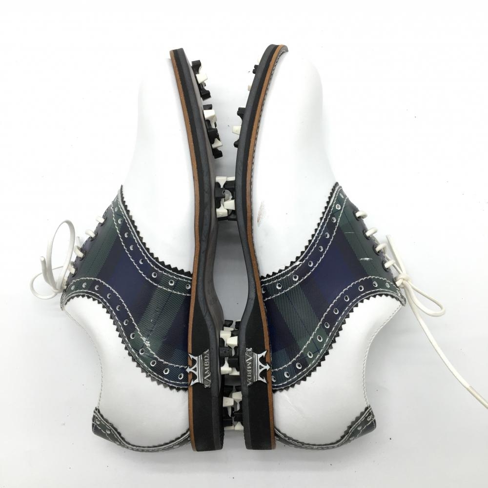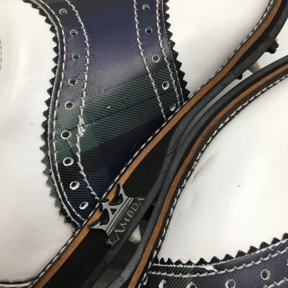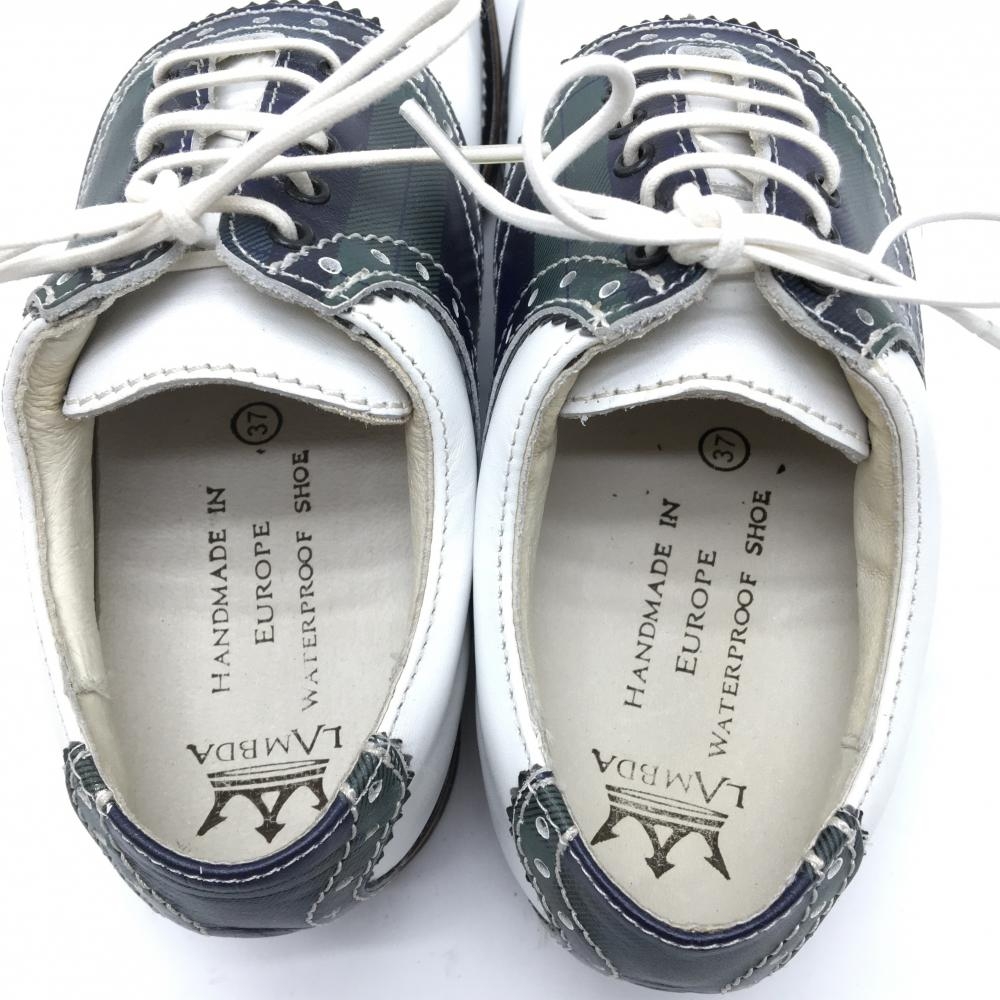 【美品】ラムダ ゴルフシューズ 白×ネイビー 13707-05 収納袋付 レディース EU37(24.0相当) ゴルフウェア