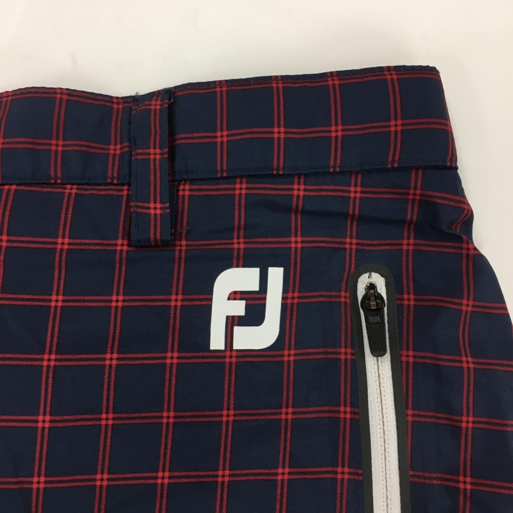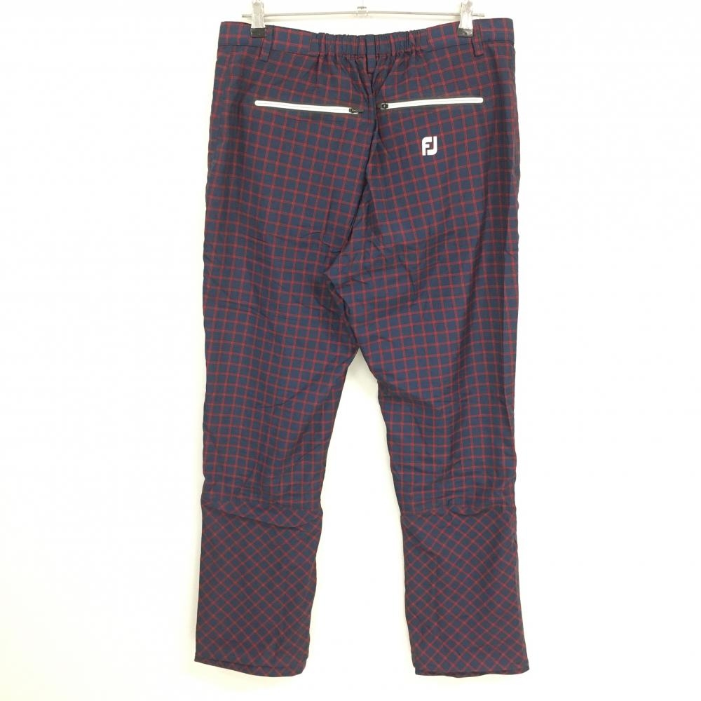 【美品】フットジョイ パンツ ネイビー×レッド 格子チェック 裏微起毛 後ろウエストゴム メンズ XL ゴルフウェア FootJoy