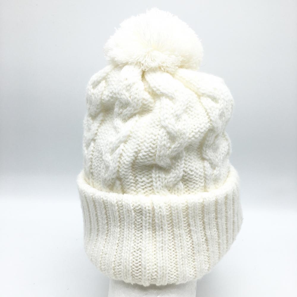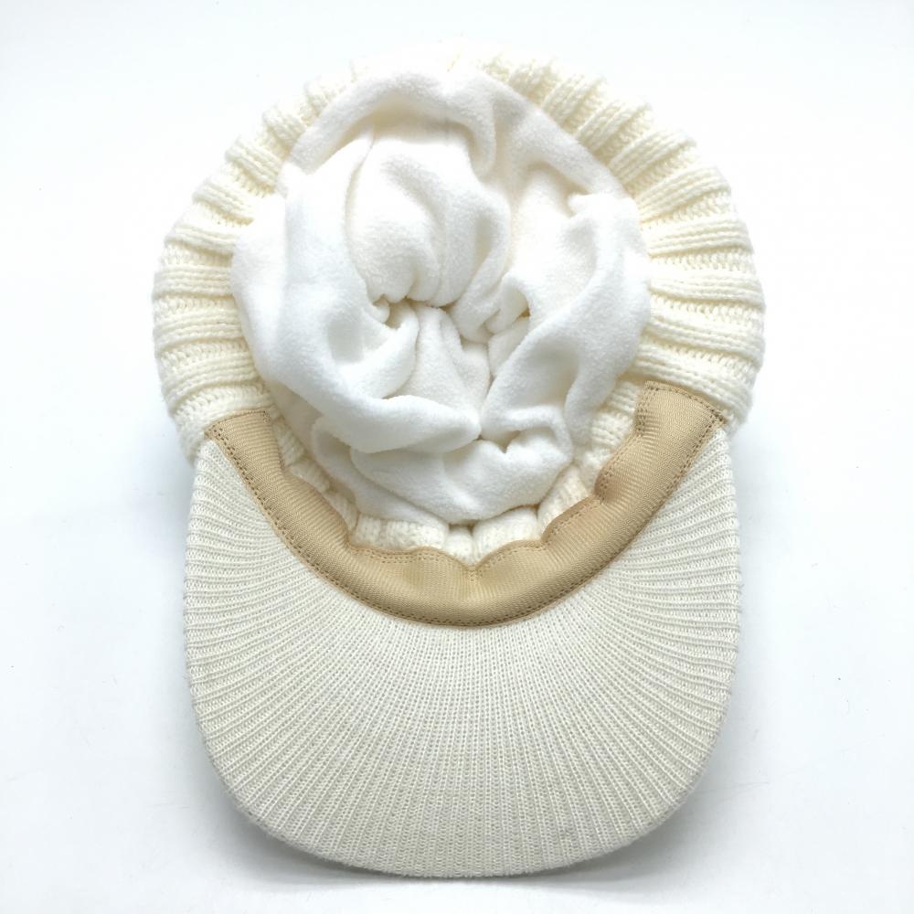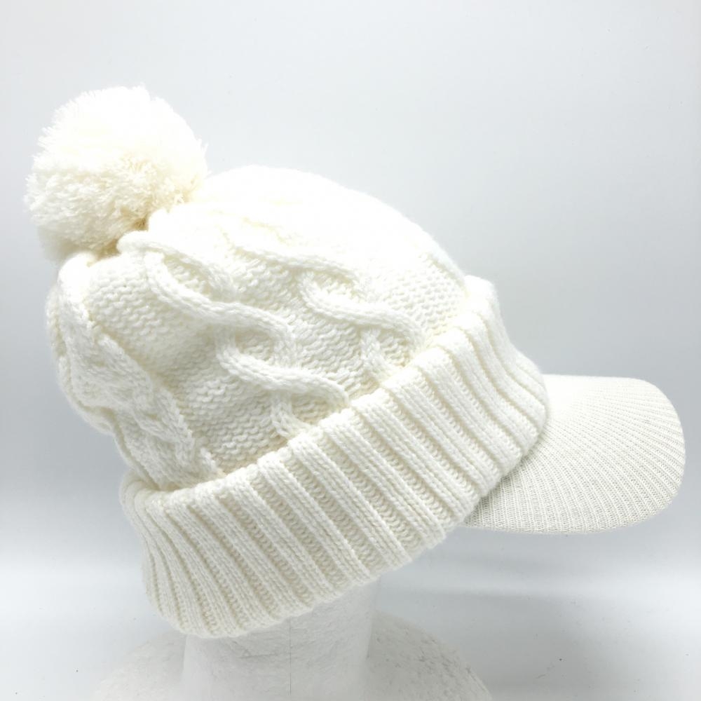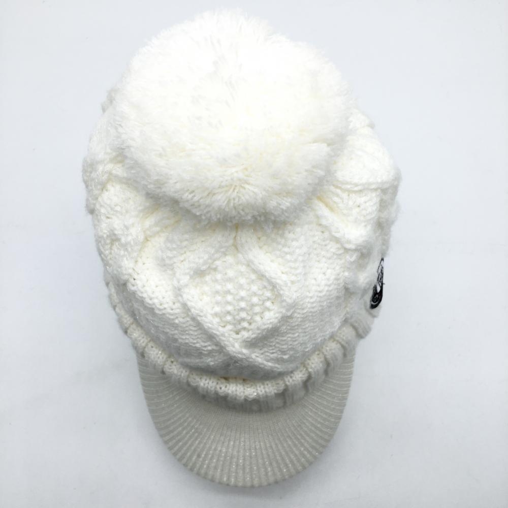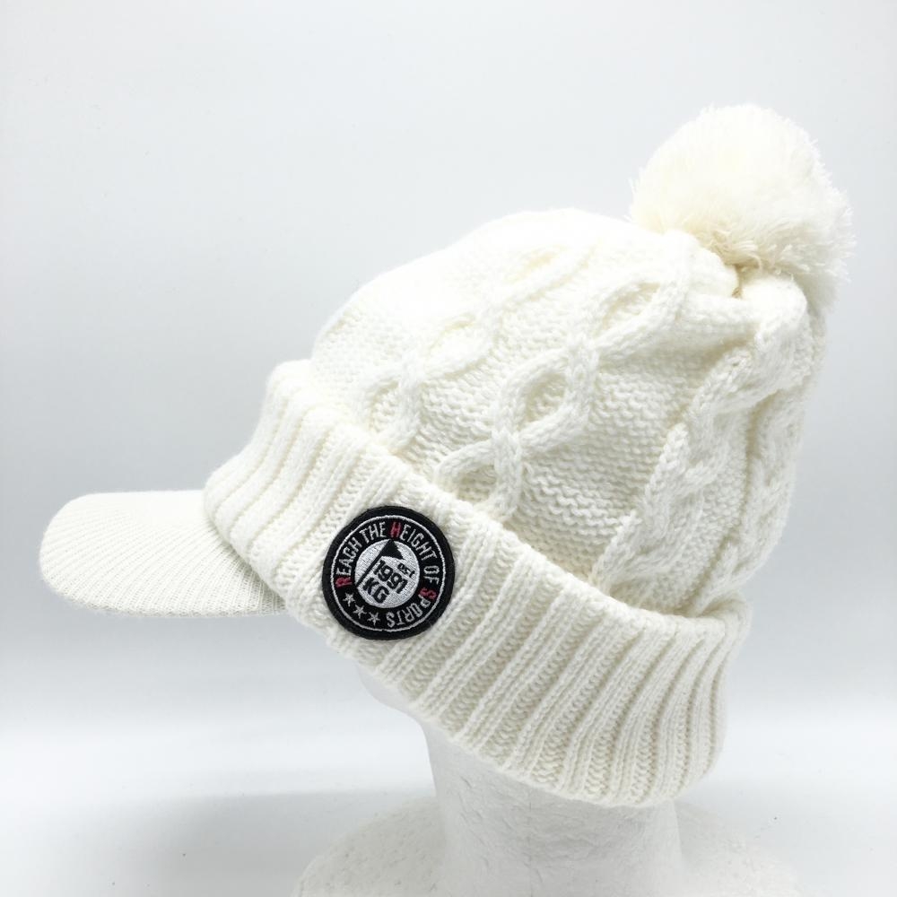 【超美品】コルウィン つば付ニット帽 白 ラメ ボンボン付 フリー ゴルフウェア Kolwin